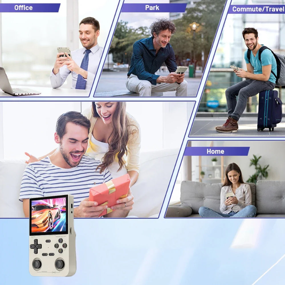 - Equipped with the professional RK3326 gaming chip, 1.5GHz, 64-bit, capable of running large 2D and some 3D games with ease.