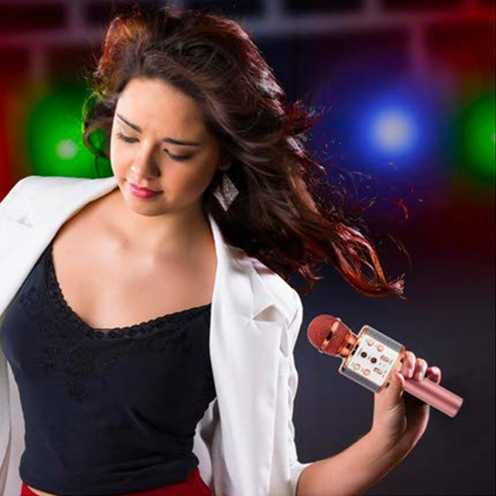 Karaoke Microphone for Kids Portable Wireless Bluetooth Singing Microphone with LED Lights -Rose Gold