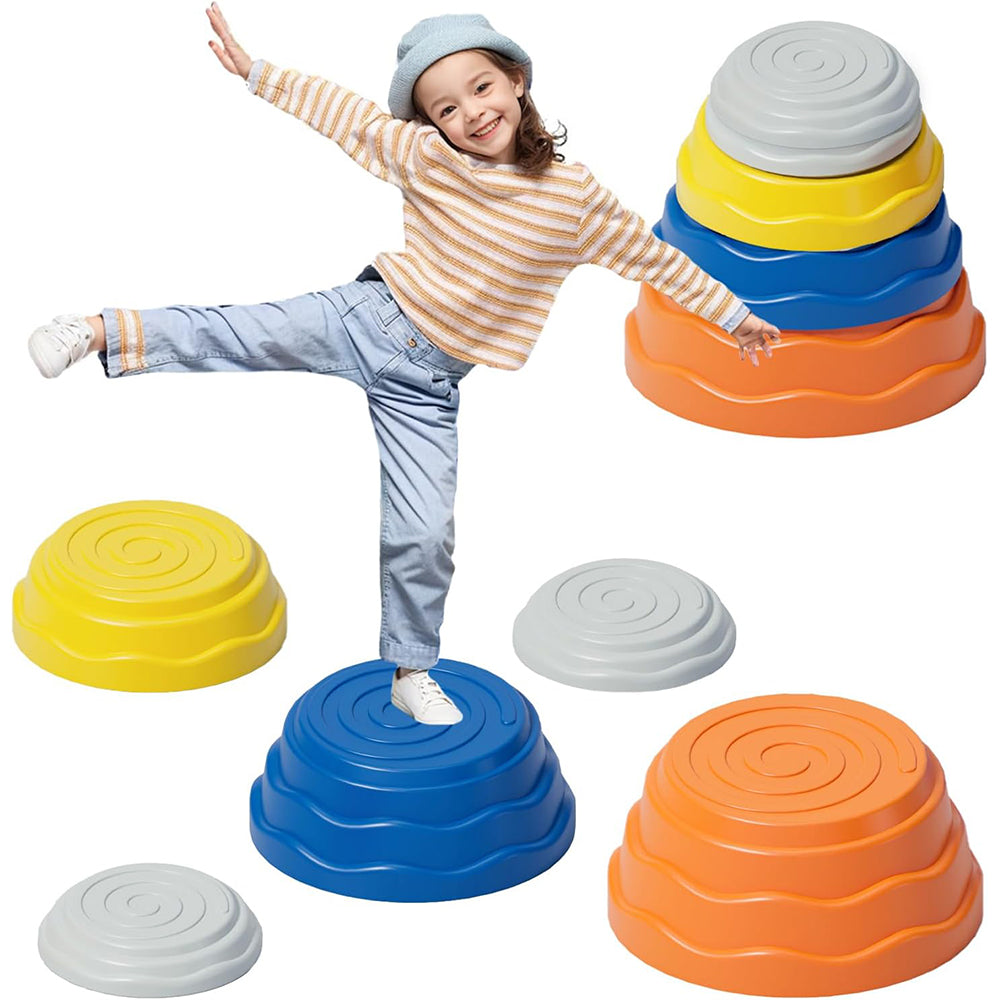 - The balancing stepping stones for kids have non-slip silicone edges and a textured design that increases friction and prevents your kids from falling.