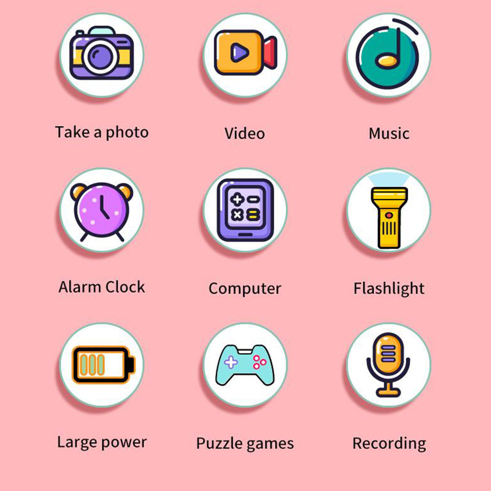 - Multifunctional design with support for photos, videos, music, alarm, games, flashlight, calculator, and recording.