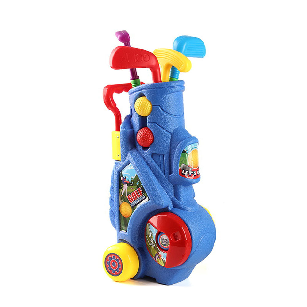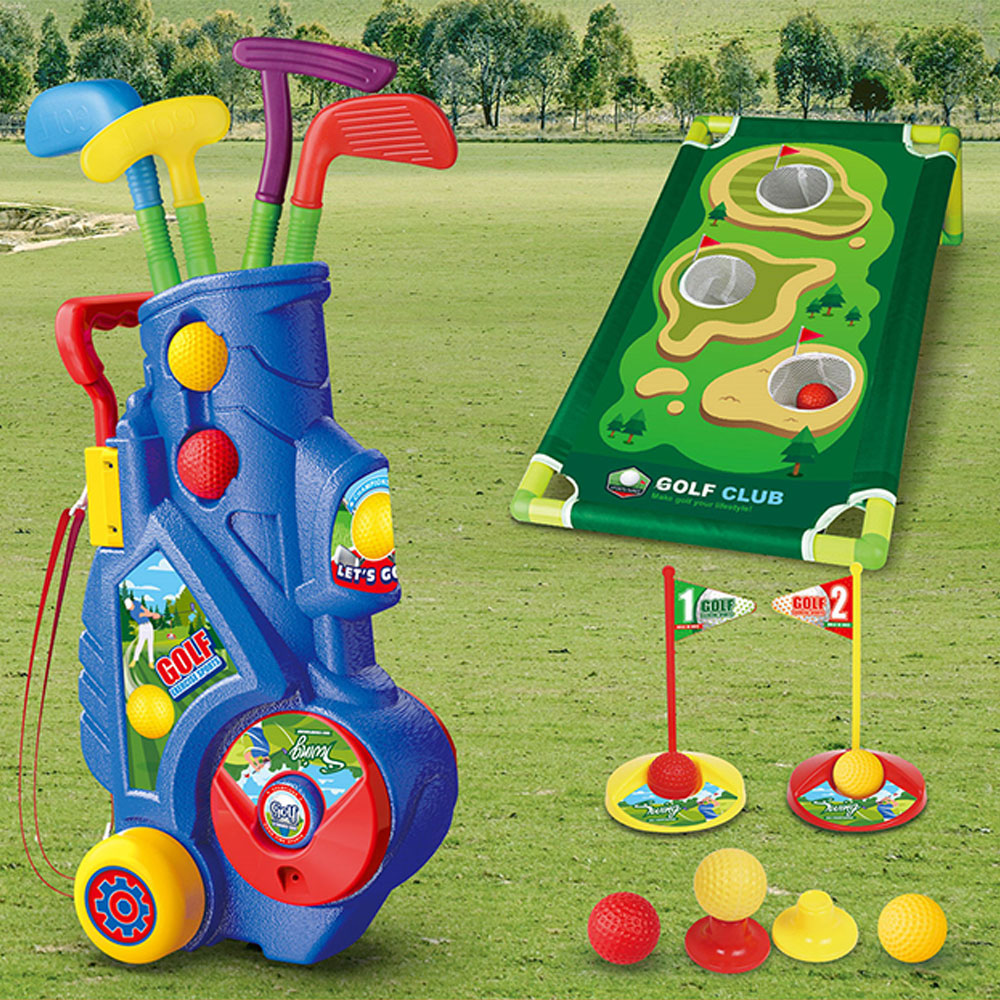- Set includes 2 golf tees, 2 golf holes, 4 golf clubs, 4 golf balls, 1 golf cart, 1 putting mat, and 1 golf rack, all designed to help kids enjoy and practice their golf skills.