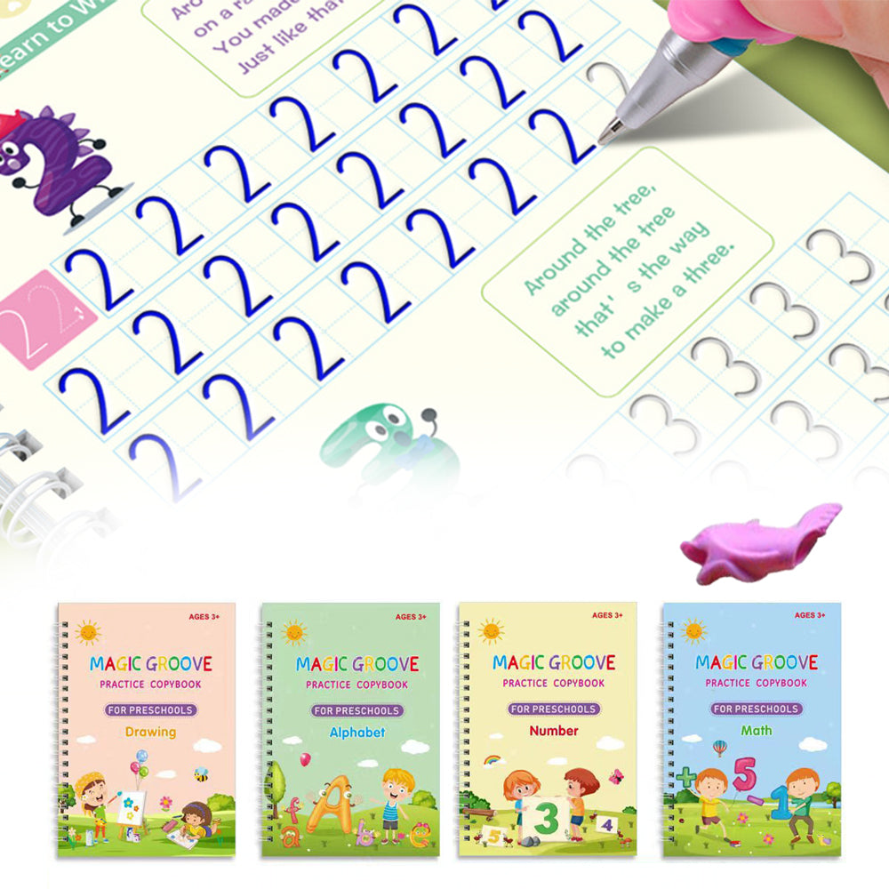 Kids Magic Handwriting Copybook Reusable Groove Practice Calligraphy Kit