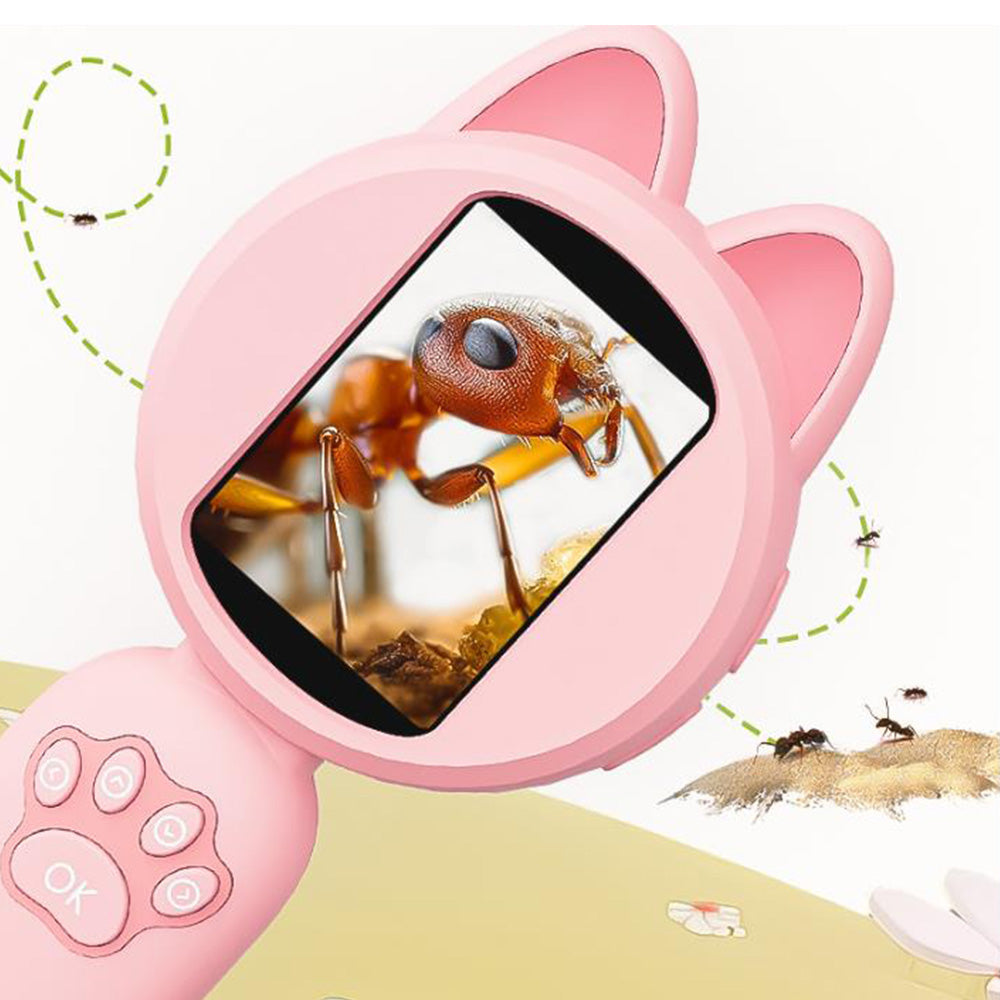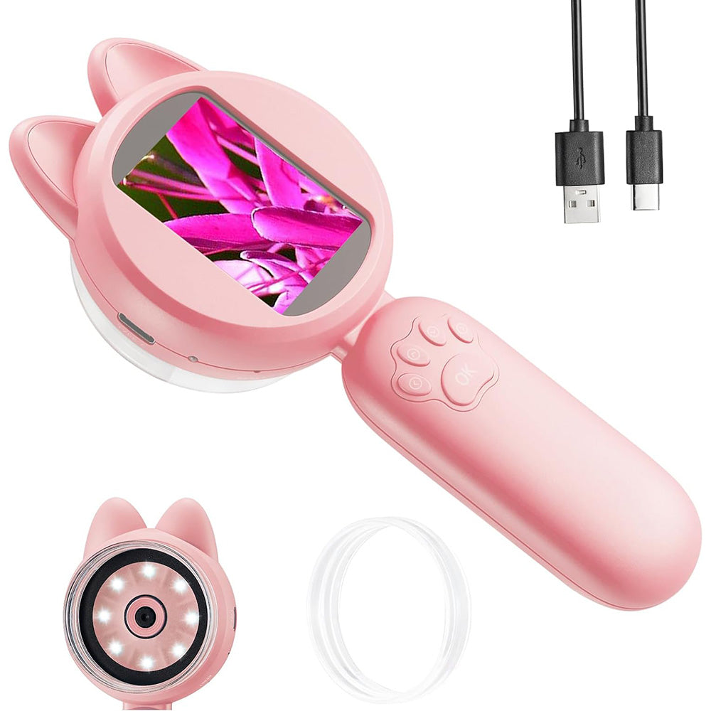 Kids Portable Microscope Mini Digital Microscope with LED Lights Pink