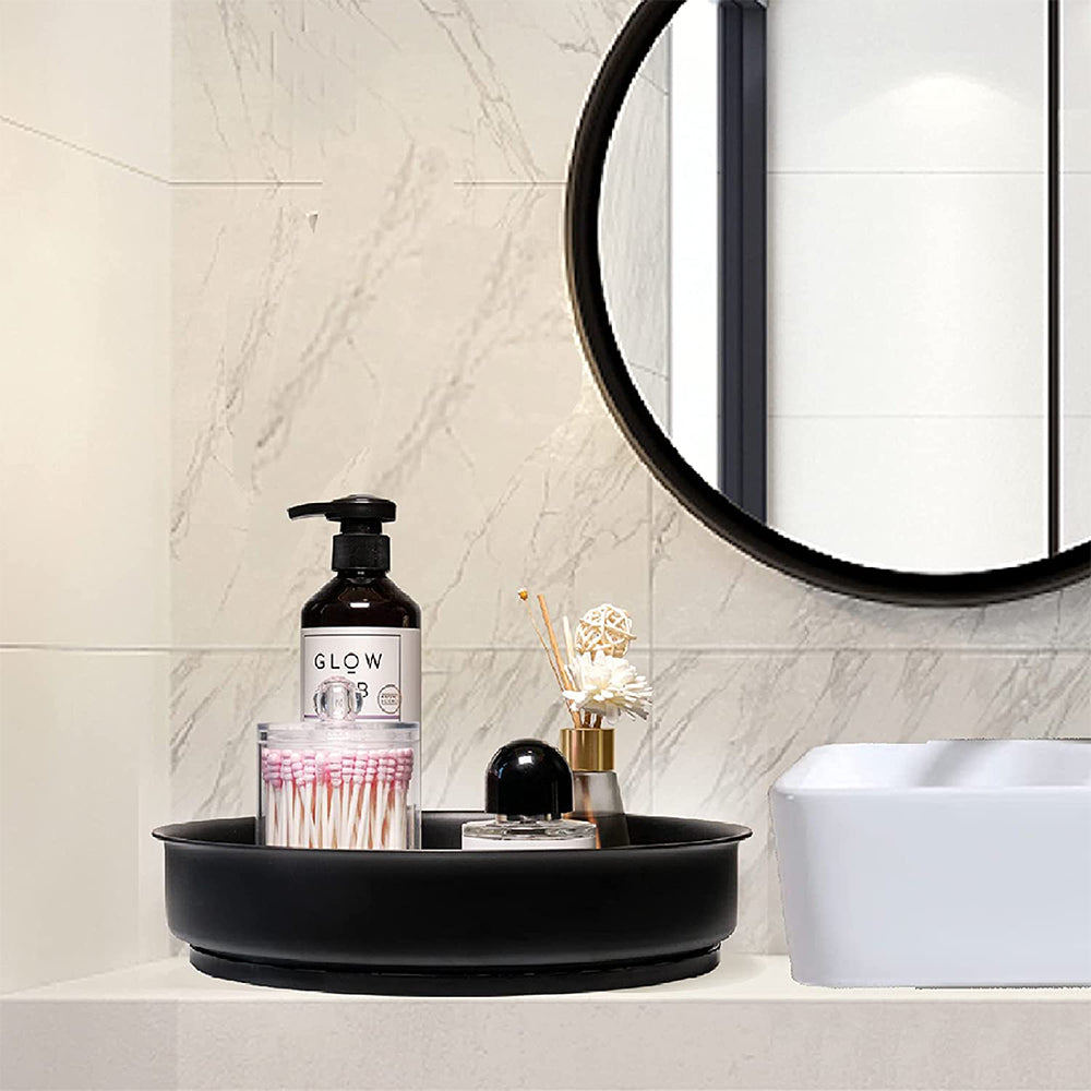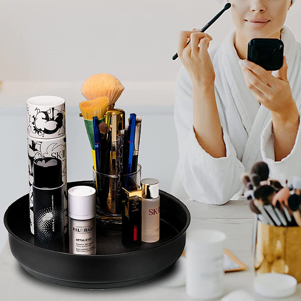 - 360 degree rotating design: very practical and fashionable. Allowing you to access the items you need with a simple spin. This Organizer is perfect for limited space usages, such as cabinets and cupboards. The surface on the turntable keeps items in place and the lip prevents products from falling out.