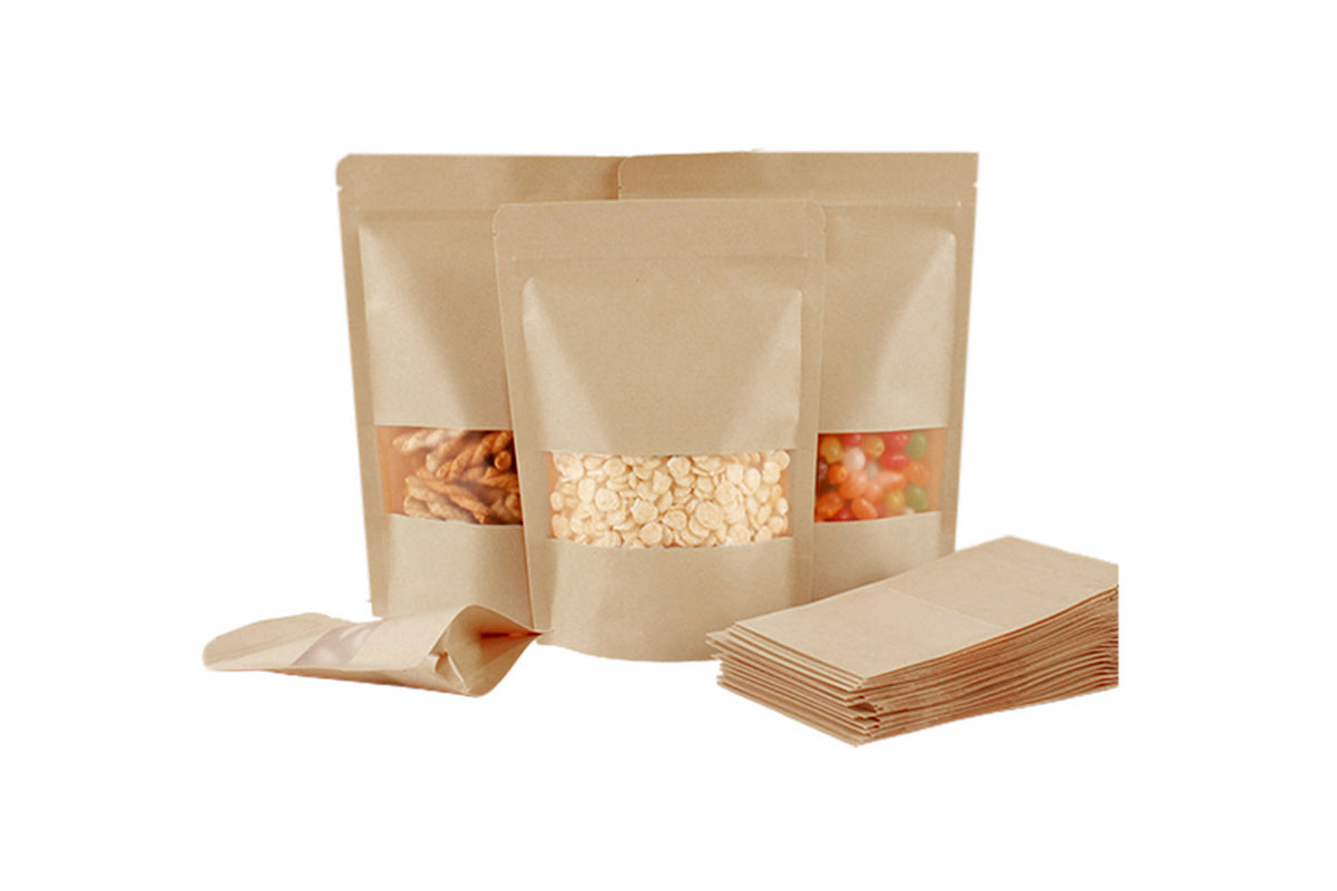 Kraft Stand Up Zip Lock Pouch Bags Resealable with Transparent Window-10pcs
