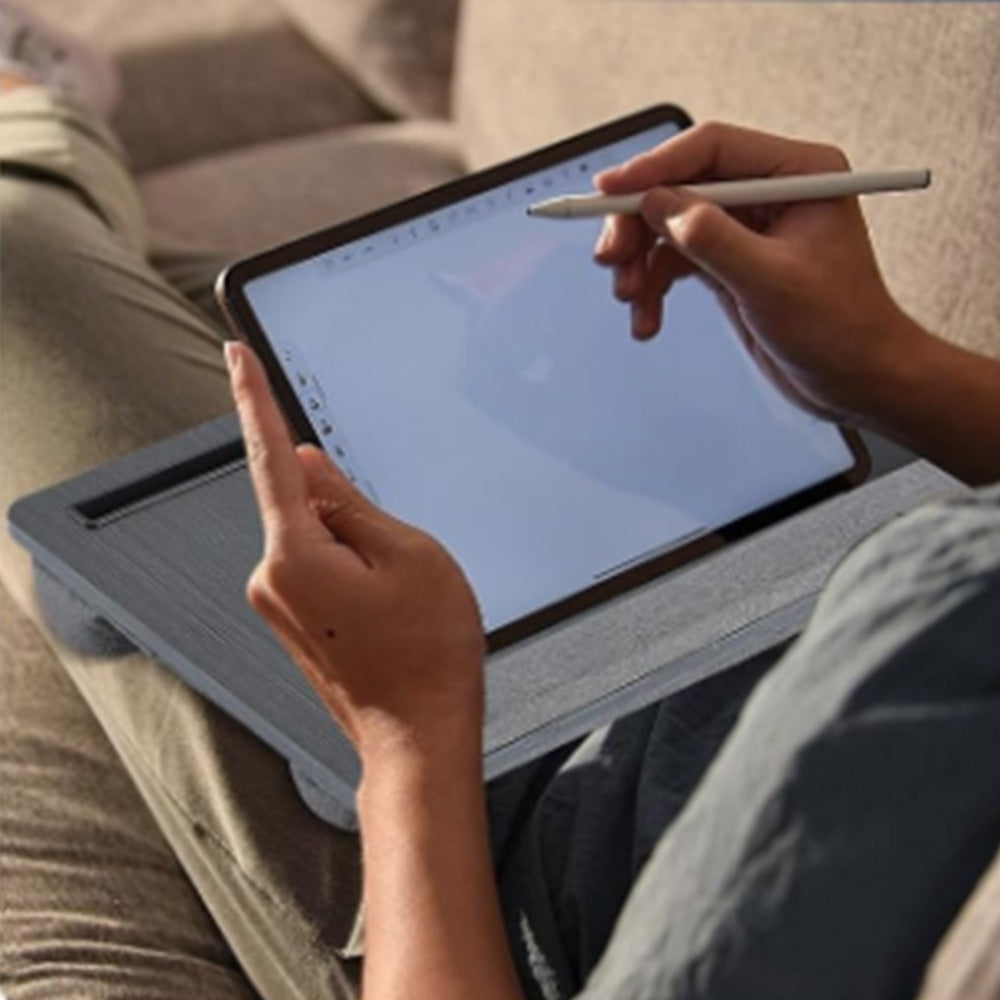 - This multifunctional lap desk is built with an environmentally friendly wooden panel and dual bolster cushions for comfort and support. It can be used while lying on your bed or sofa or while travelling.
