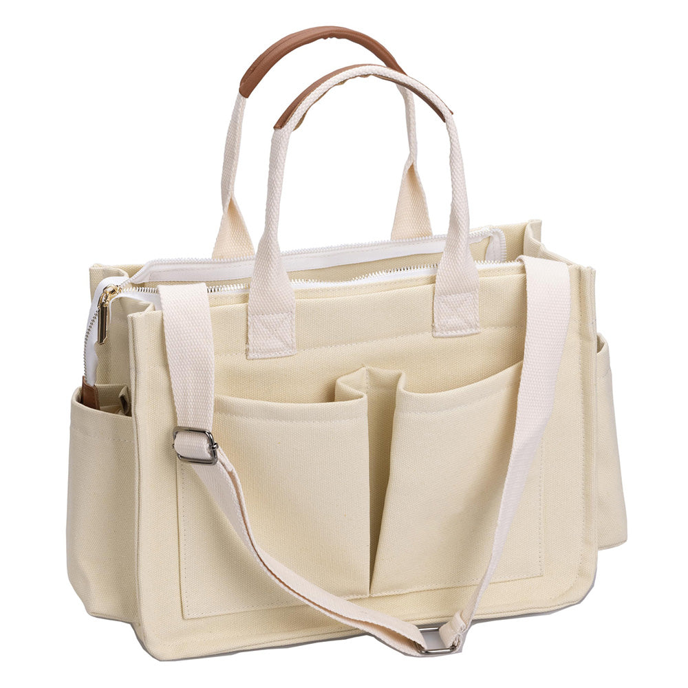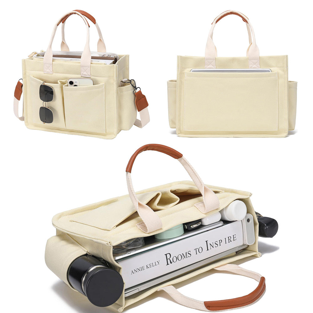 Large Canvas Tote Bag for Women Laptop Work Book Bags Crossbody Handbag Shoulder Travel Gym Bag Beige