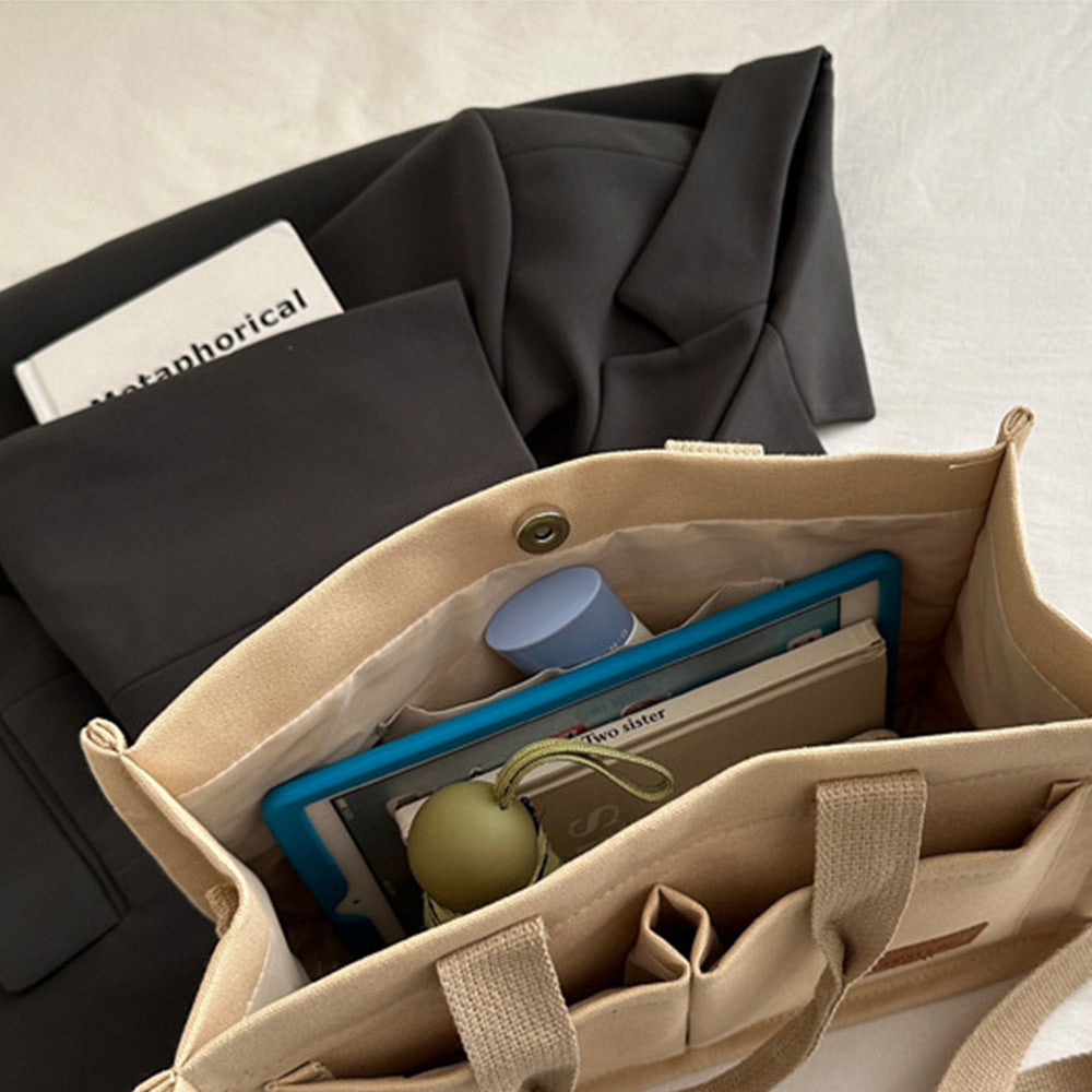 - Made of canvas, this tote bag is built to withstand daily wear and tear, it's robust construction ensures long-lasting use, making it a reliable choice for any occasion.