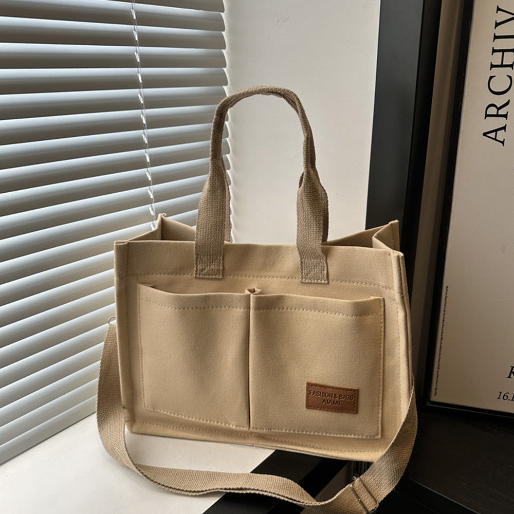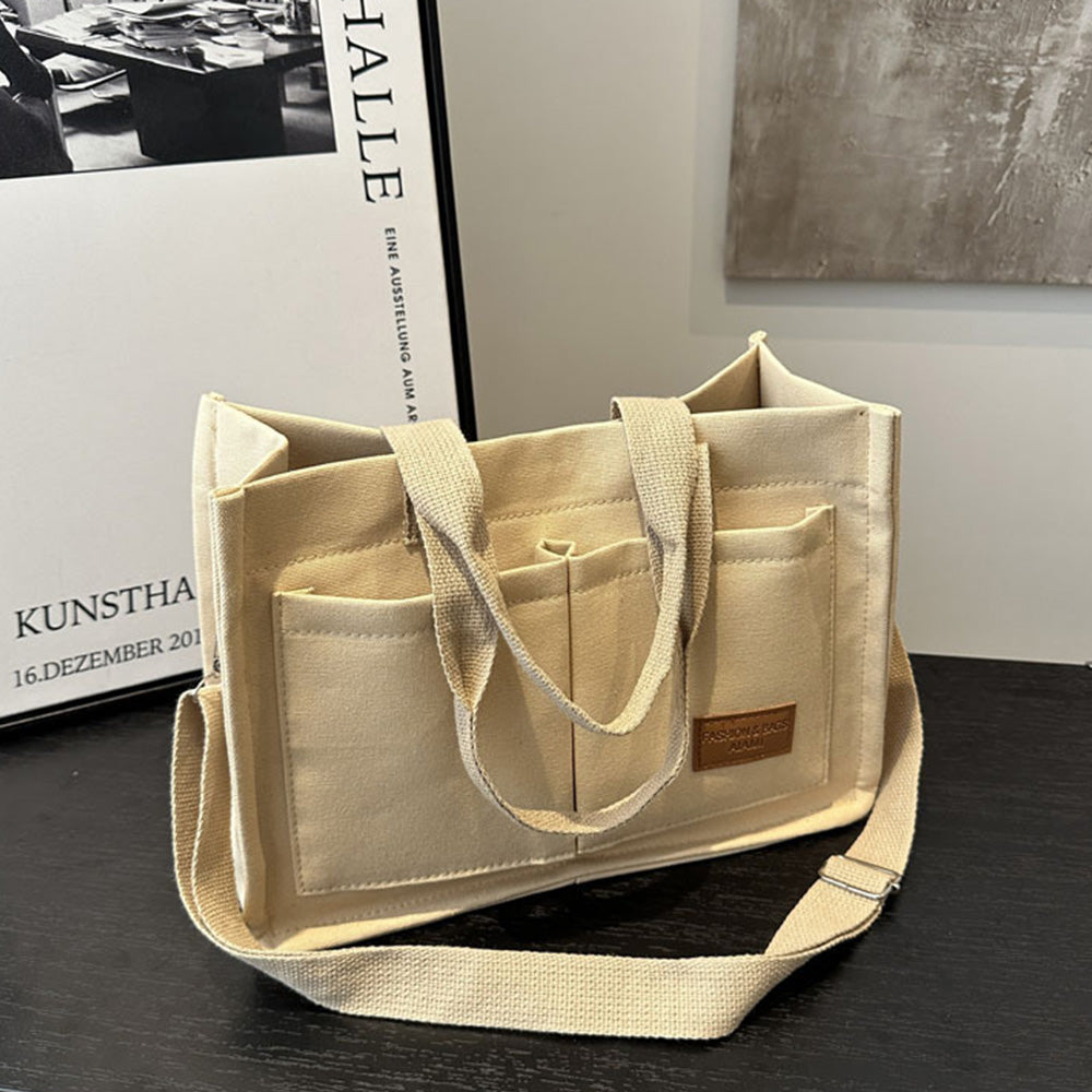 Large Canvas Tote Bag for Women Multi-Pocket Crossbody Bag Work Bible Messenger Purse Khaki