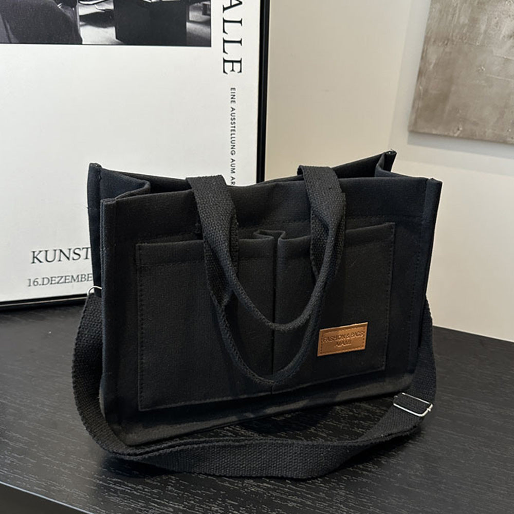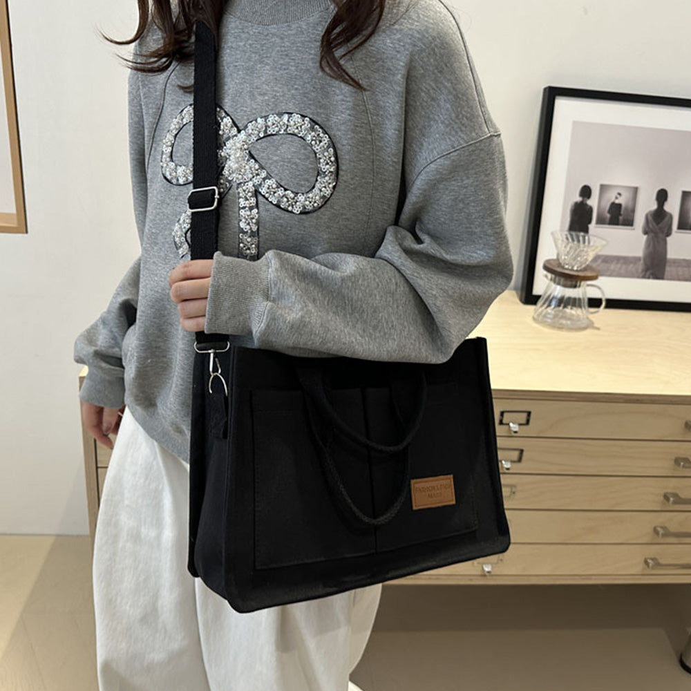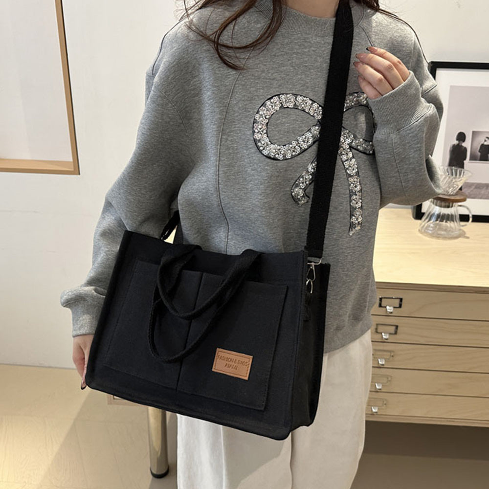 Large Canvas Tote Bag for Women Multi-Pocket Crossbody Bag Work Bible Messenger Purse Black