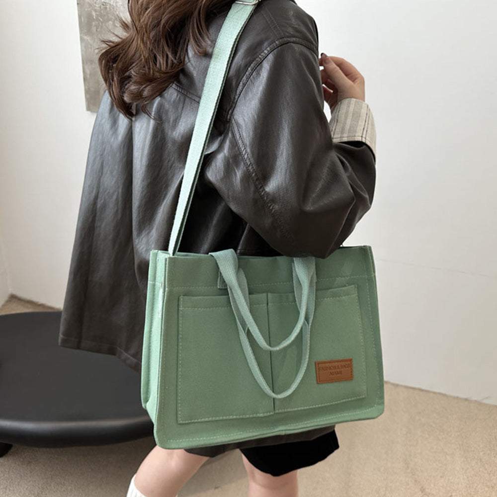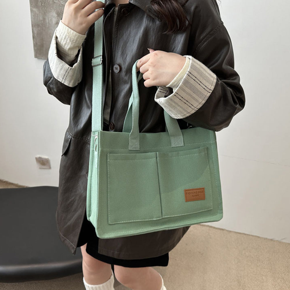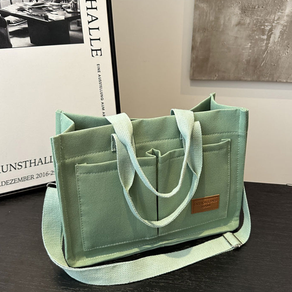Large Canvas Tote Bag for Women Multi-Pocket Crossbody Bag Work Bible Messenger Purse Green