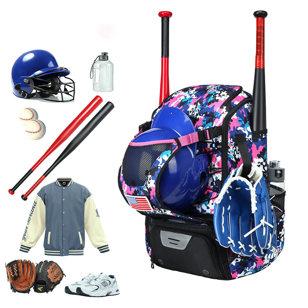 Large Capacity Baseball Bag Softball Bat Bag with Shoe Compartment Multi-Color