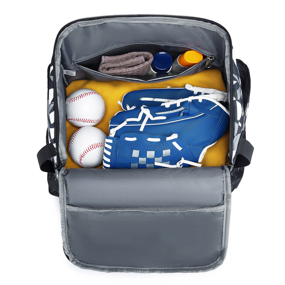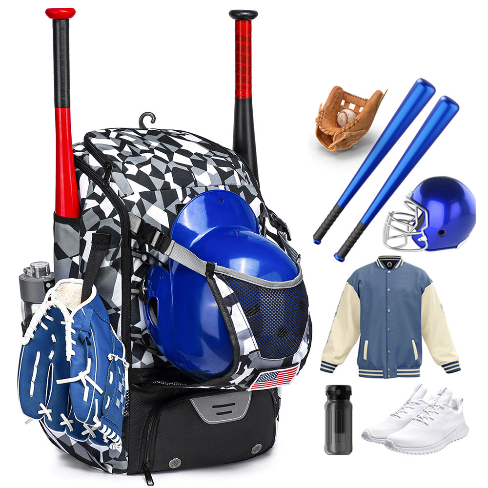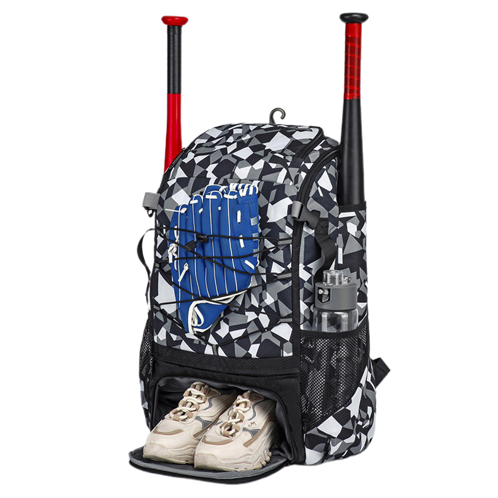 Large Capacity Baseball Bag Softball Bat Bag with Shoe Compartment Black and White