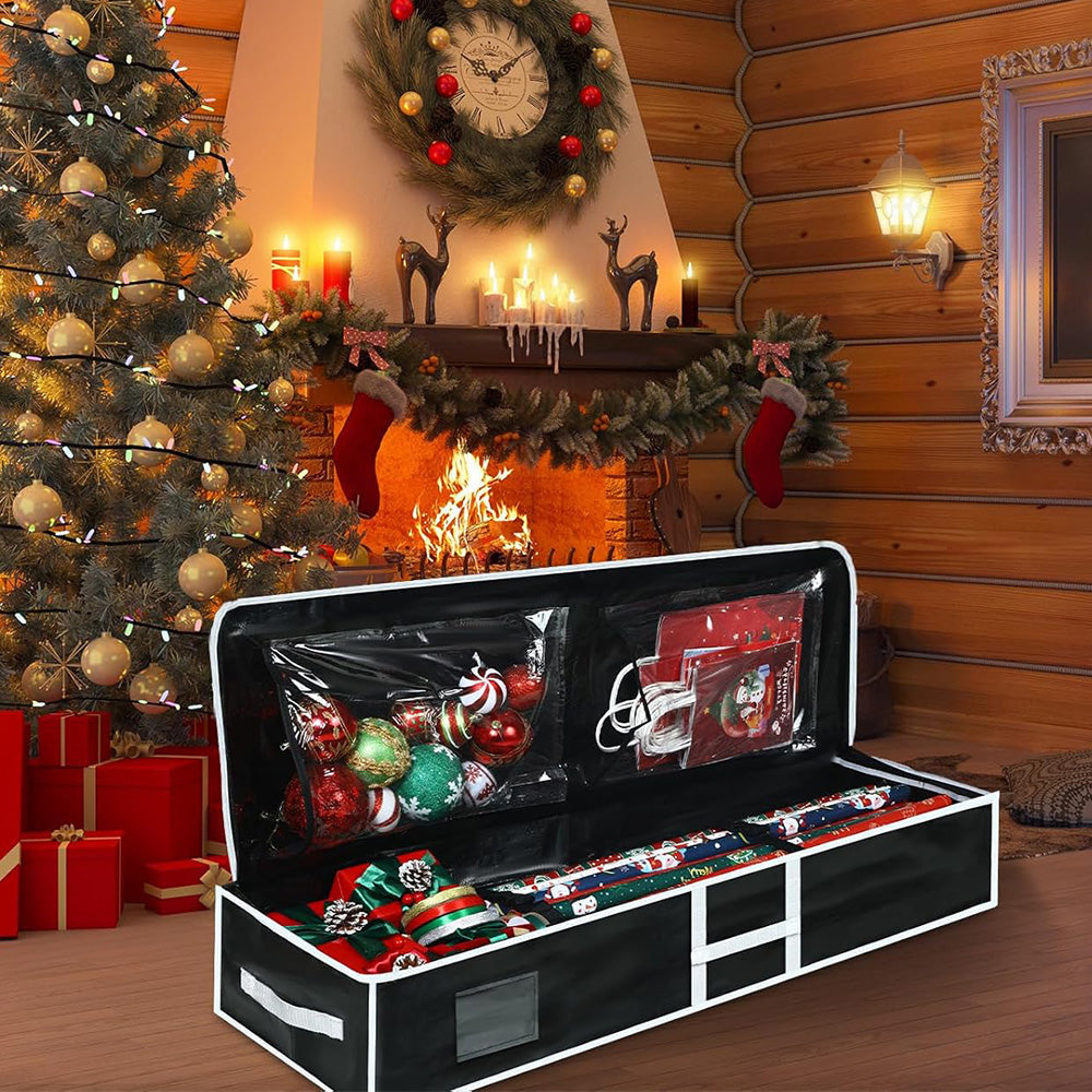 Organize your gift wrap and accessories with this large-capacity PE storage bag. Designed for long-term use, it features Water-Resistant protection, dual zippers, and smart compartments for convenient access. Whether you're storing holiday wrap, ribbons, or other seasonal items, this foldable organizer helps keep everything neat and accessible at home or on the go.