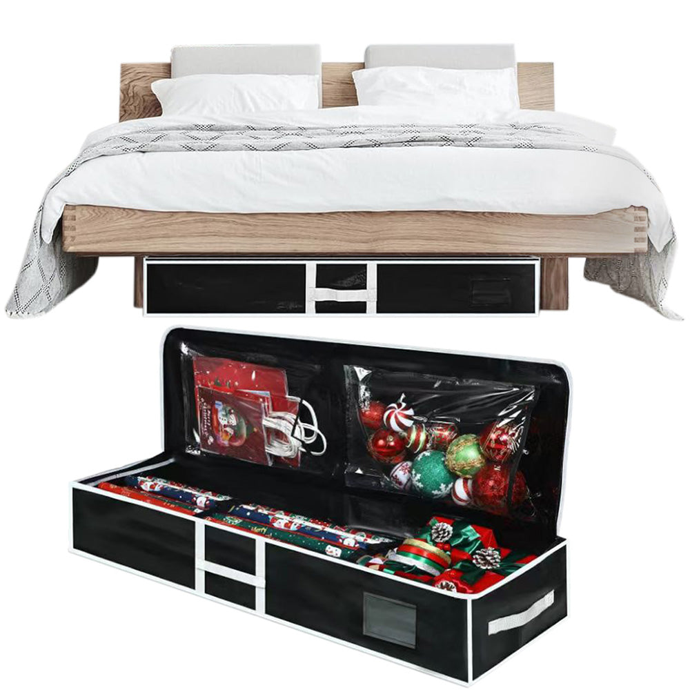 Large Capacity PE Gift Wrap Storage Bag with Zipper & Carry Handles Black