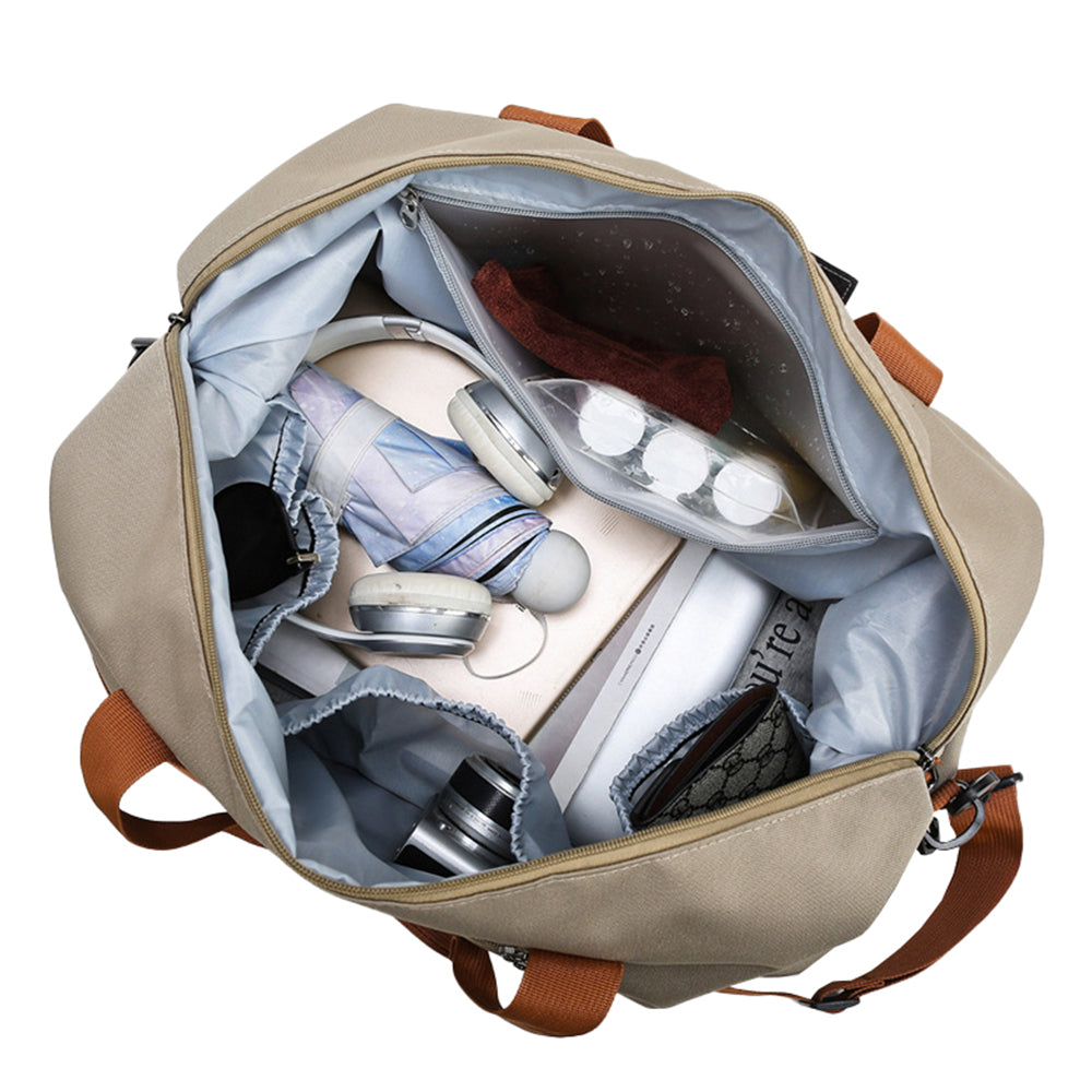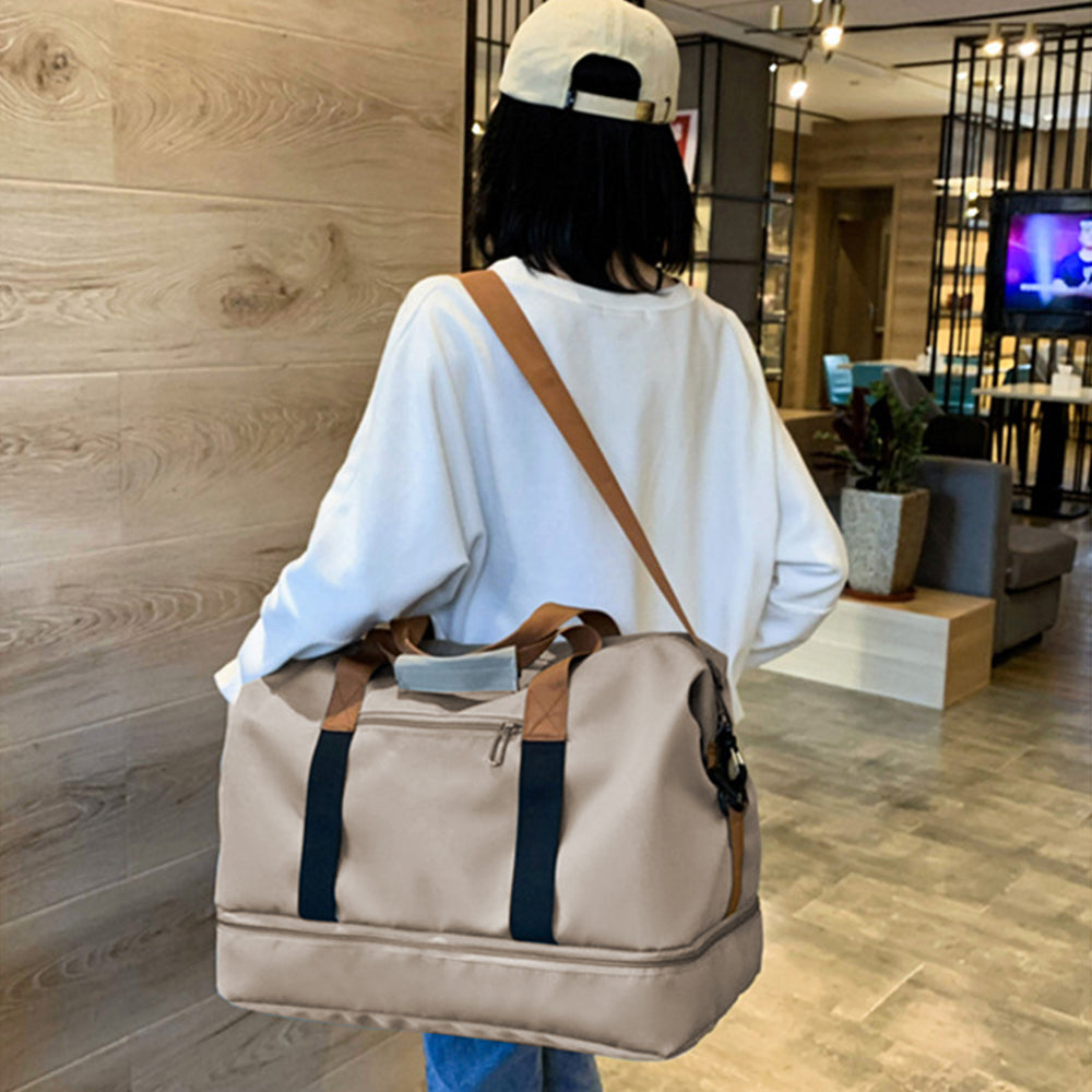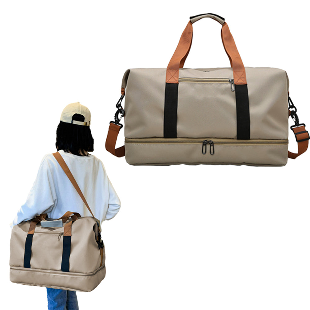 Large Capacity Travel Bag Duffel Bag with Wet and Dry Compartments Khaki