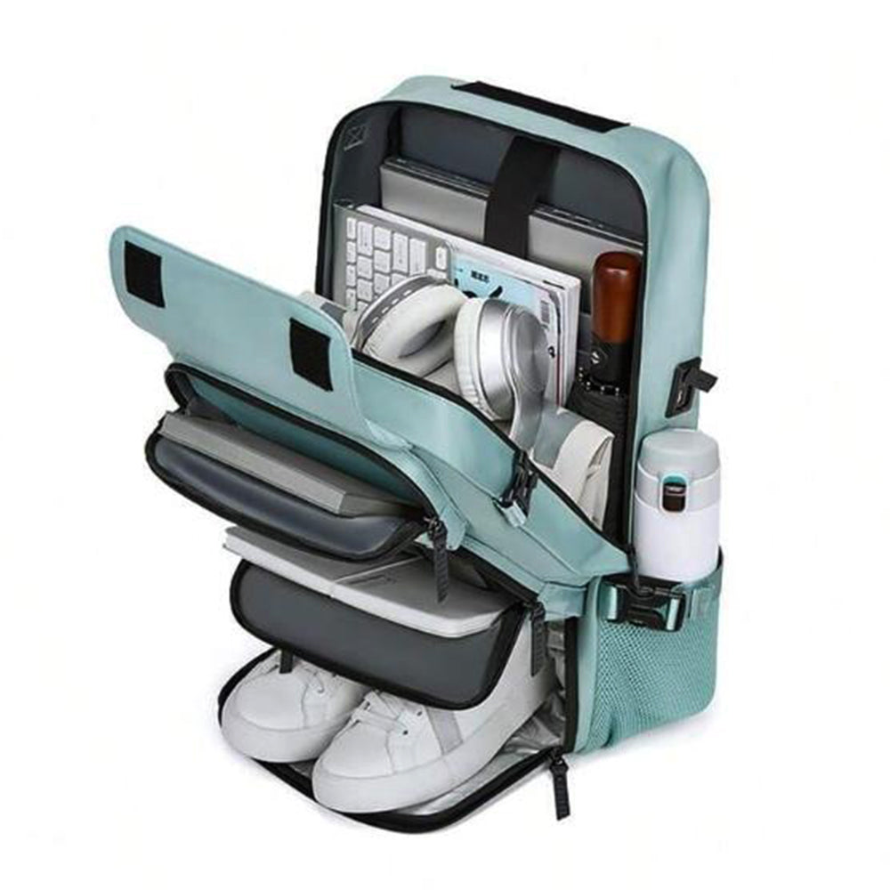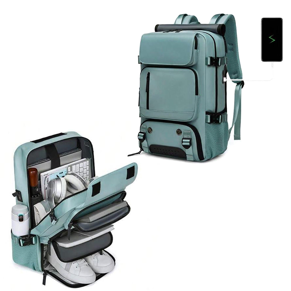 Large Travel Backpack Water Resistant Laptop Backpack Camping Rucksack With Separate Shoe Pocket Green