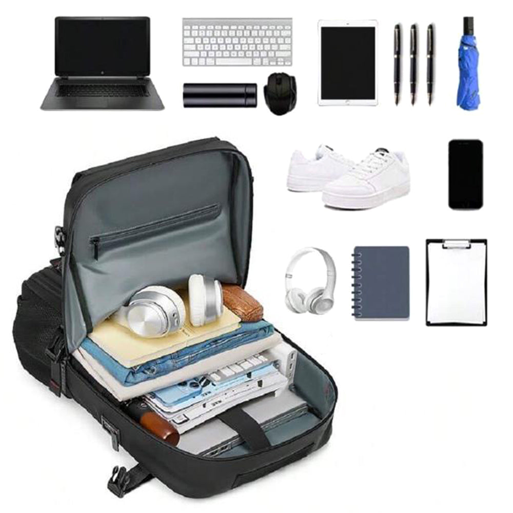 Large Travel Backpack Water Resistant Laptop Backpack Camping Rucksack With Separate Shoe Pocket Black
