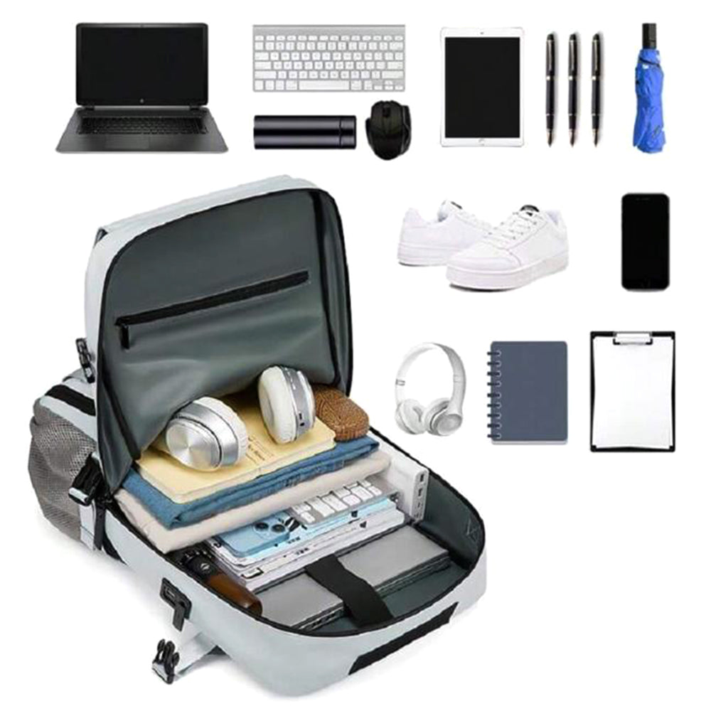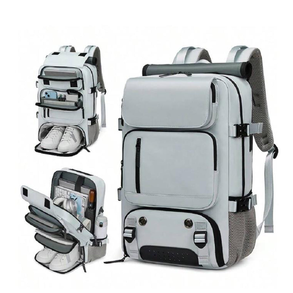 Large Travel Backpack Water Resistant Laptop Backpack Camping Rucksack With Separate Shoe Pocket Grey