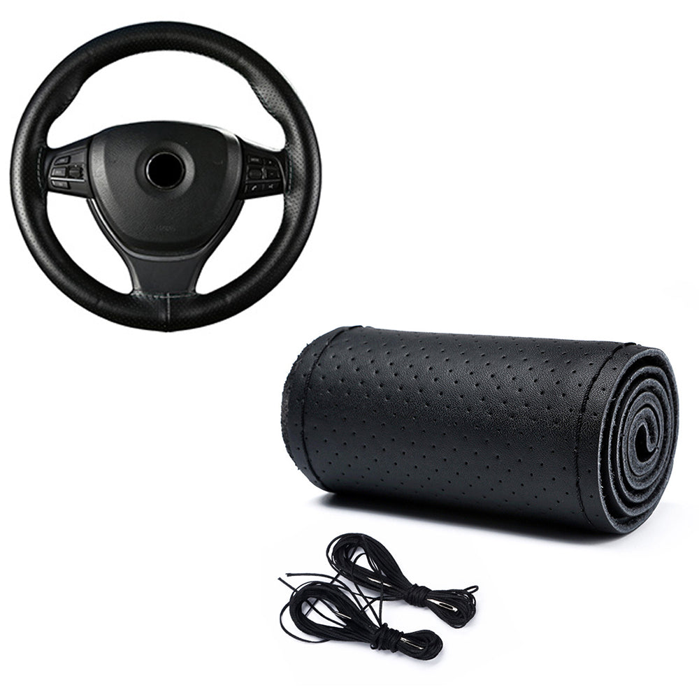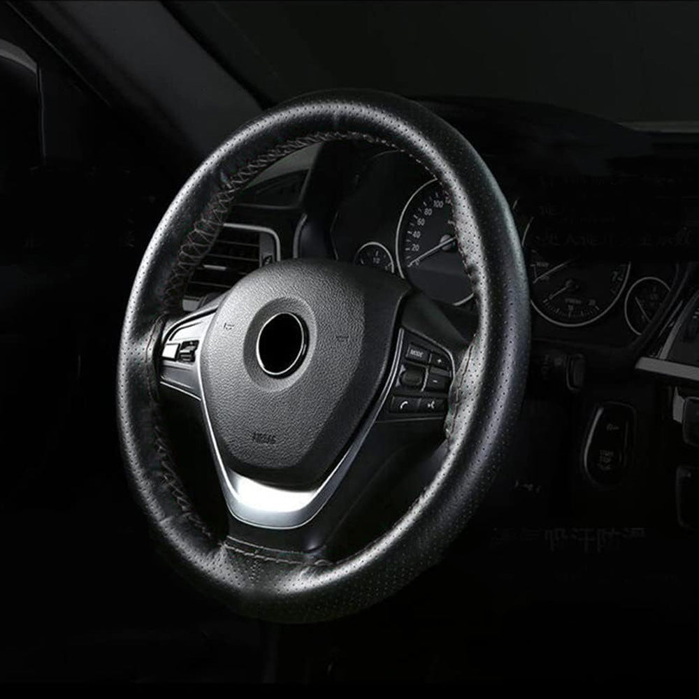 Leather Steering Wheel Cover Non-Slip Auto Steering Wheel Protector Black