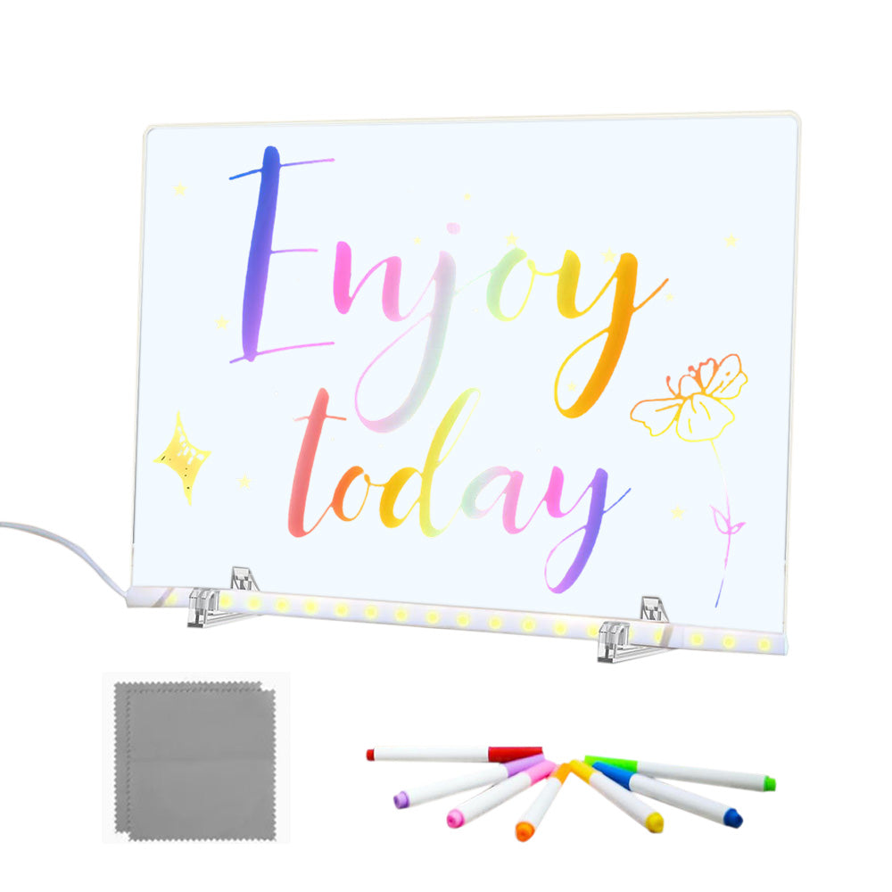 Creative LED drawing and writing board with colorful RGB lighting and adjustable brightness. Perfect for kidsa€?art, office notes, home decoration, or as a unique gift.