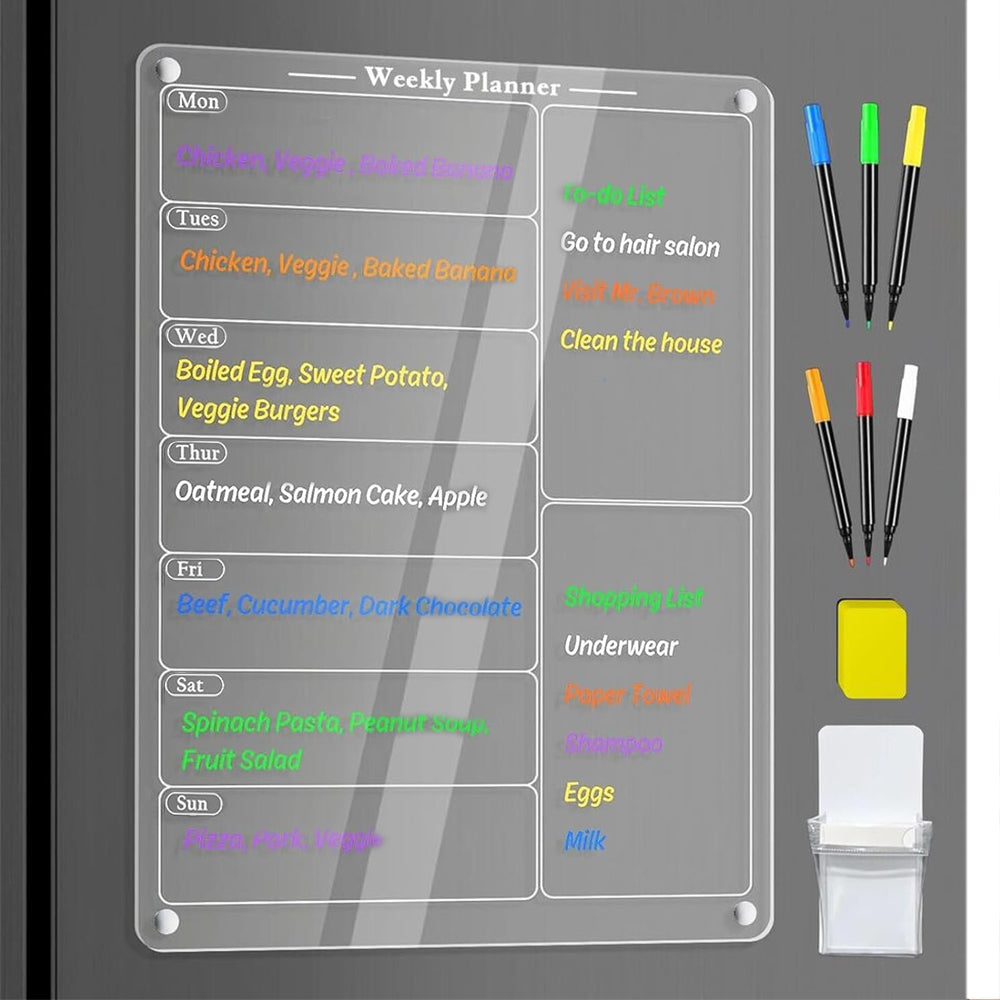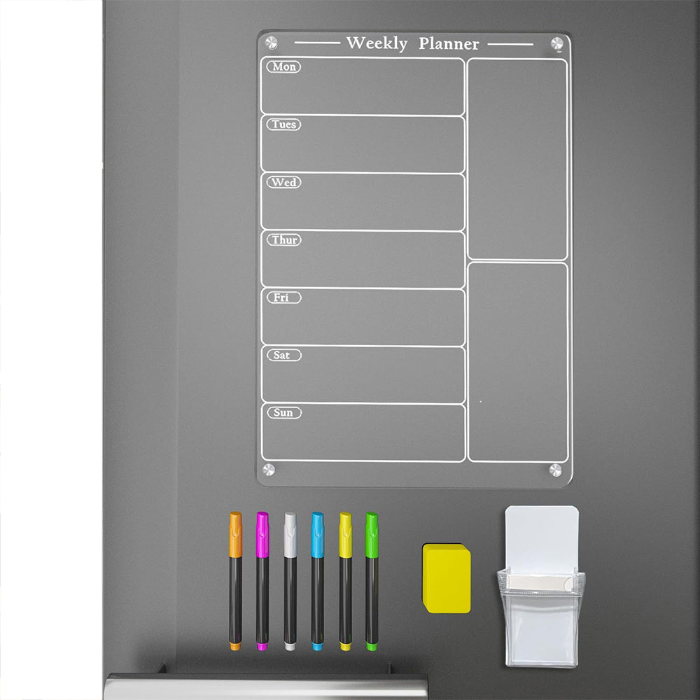 Magnetic Acrylic Weekly Calendar for Fridge Clear Dry Erase Planner Board Set Style 1