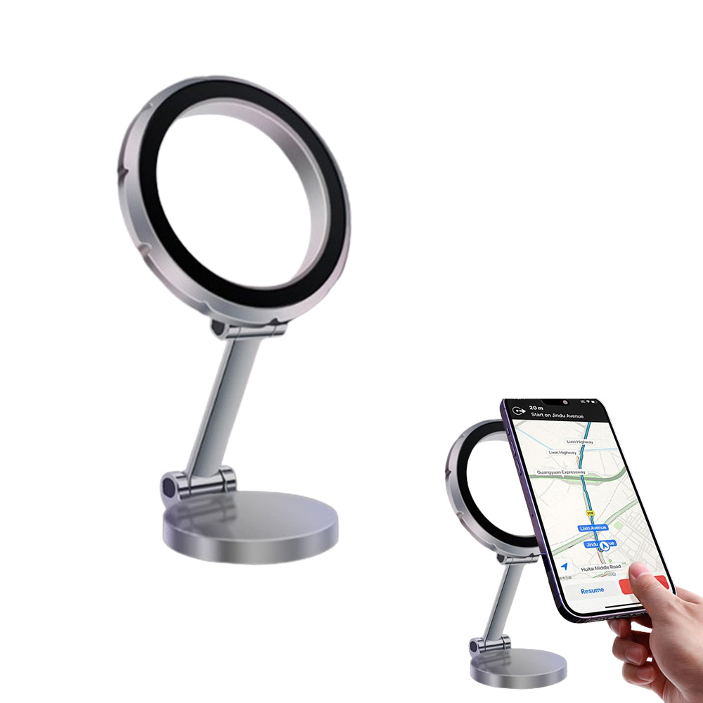 This magnetic car phone holder with a folding adjustable metal arm for increased comfort and a safer driving experience. which can adjust your phone to any ideal angle without obstructing your view.