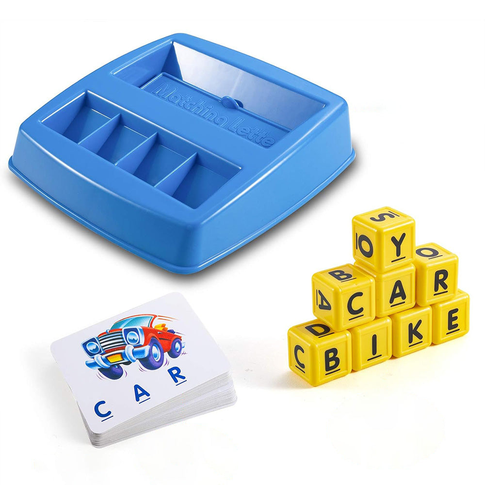 - Includes 1 tray, 30 flash cards with 60 words, 8 letter cubes.