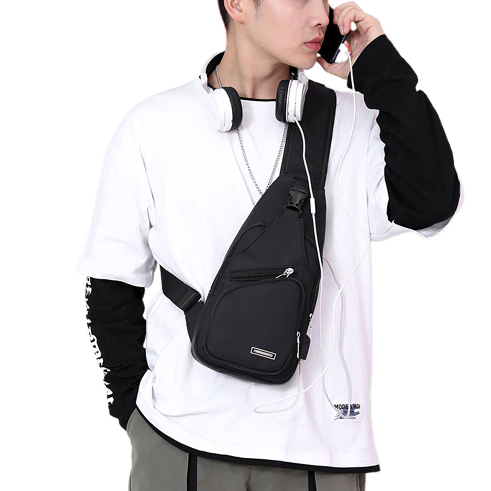 Men Chest Bag Shoulder Backpack Cross Body Satchel Travel Sling Bag Black