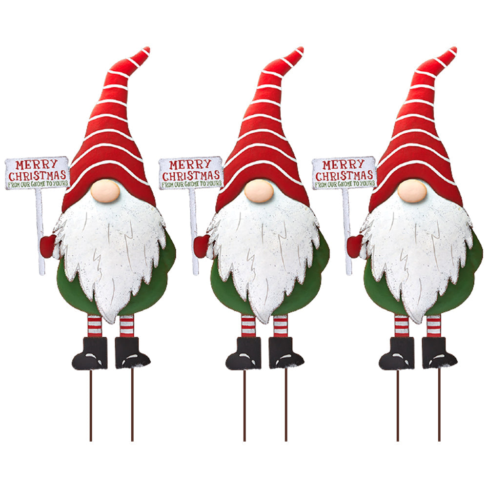 Merry Christmas Metal Gnome Sign Stake Outdoor Lawn Yard Decoration