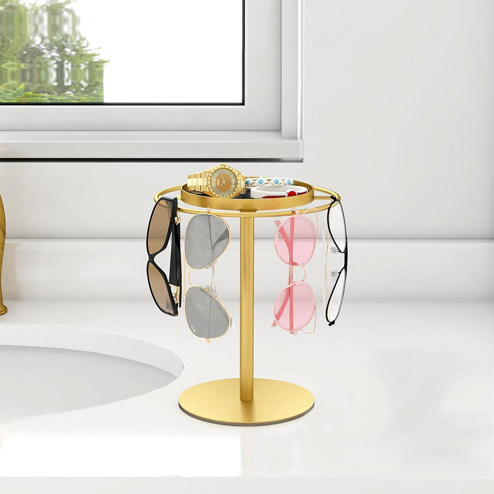 Metal Glasses Organizer Stand with Storage Tray Stylish Desk Organizer for Sunglasses Jewelry Gold