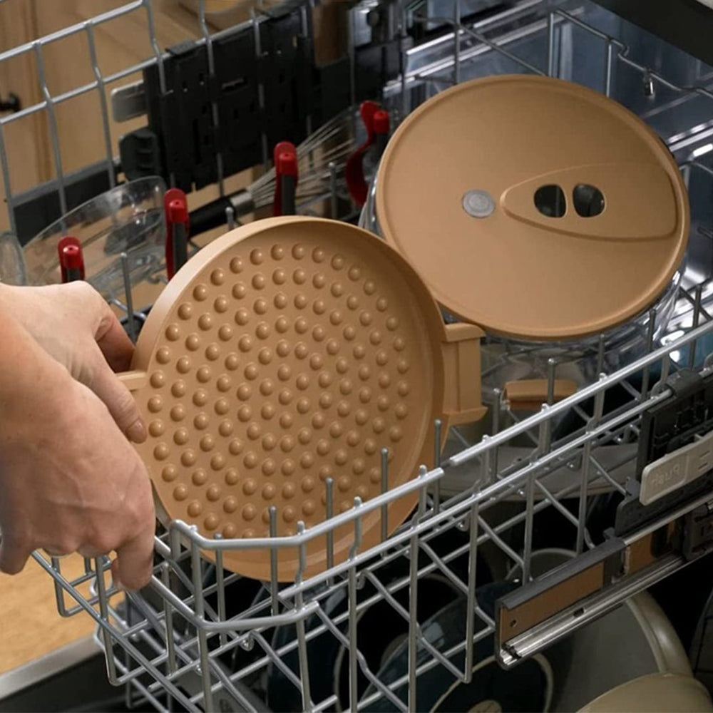 - When taking the cooking gadget out of the microwave, please hold both handles, but not the container body