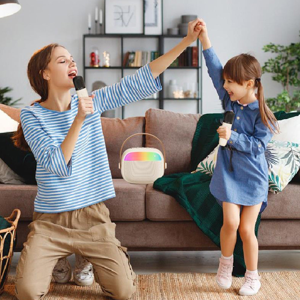 Portable mini karaoke machine with dynamic sound, RGB lighting, Bluetooth and card playback, plus a built-in DSP chip for KTV-quality audio anywhere.