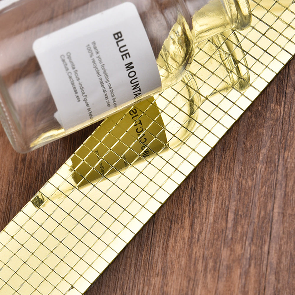 Mini Mosaic Tiles Self-Adhesive Square Mirror Glass DIY Home Wall Sticker Decors -Gold