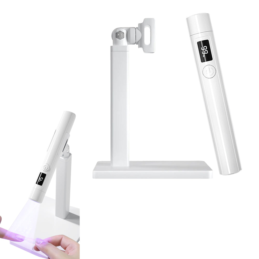 - Our mini LED Nail Lamp is with a nail magnetic slip-proof stand. It can adjust the angle 360°, cure nail art manicure in all directions, and release your hands at the same time. This can make the lighting process more efficient and easier to operate.