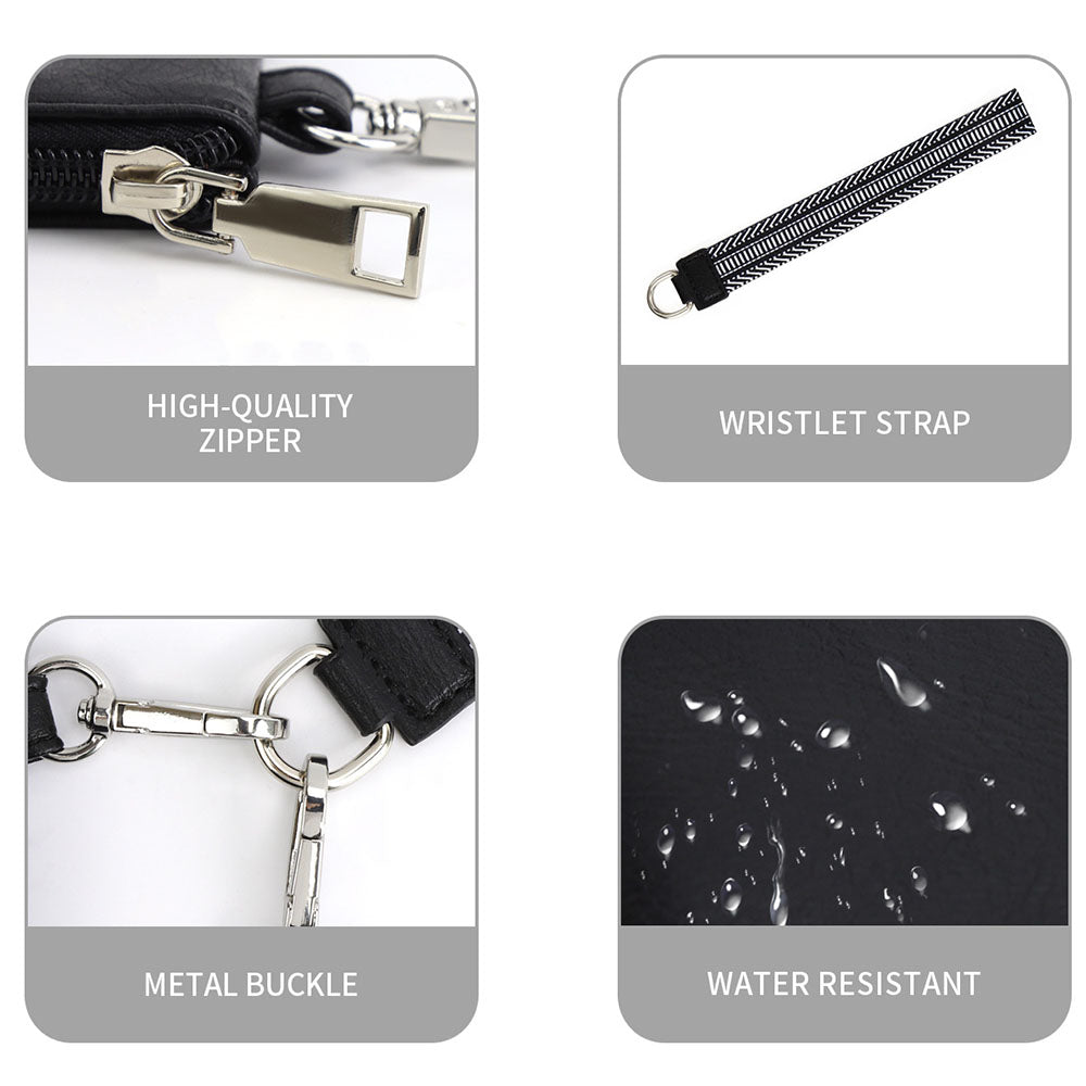 Mini Zip Around Dual Pouch Wristlet With Strap Wristlet Keychain Wallet Coin Purse Pure Black Style