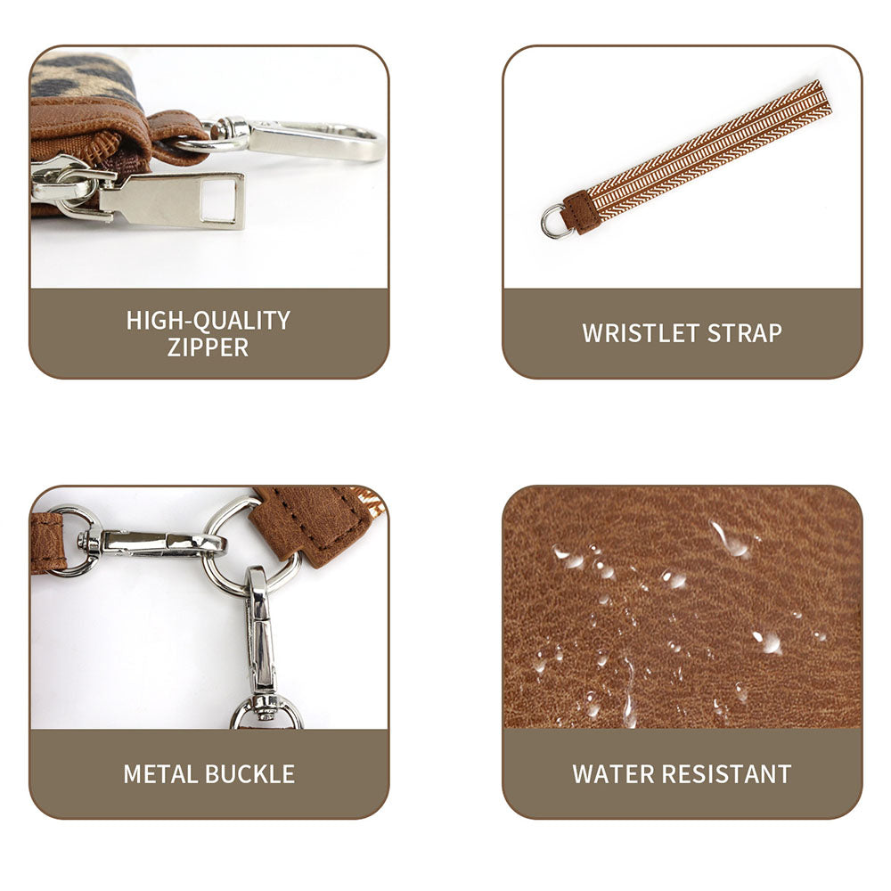 Mini Zip Around Dual Pouch Wristlet With Strap Wristlet Keychain Wallet Coin Purse Leopard Style