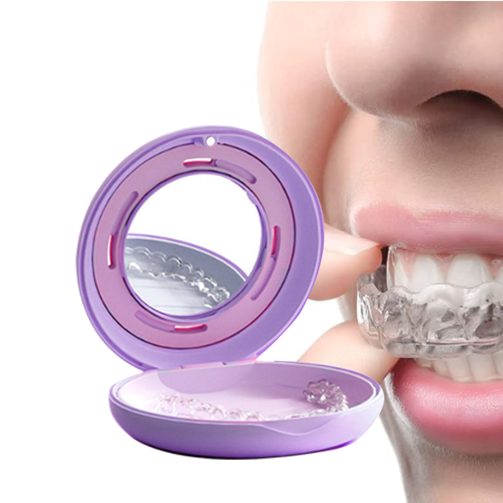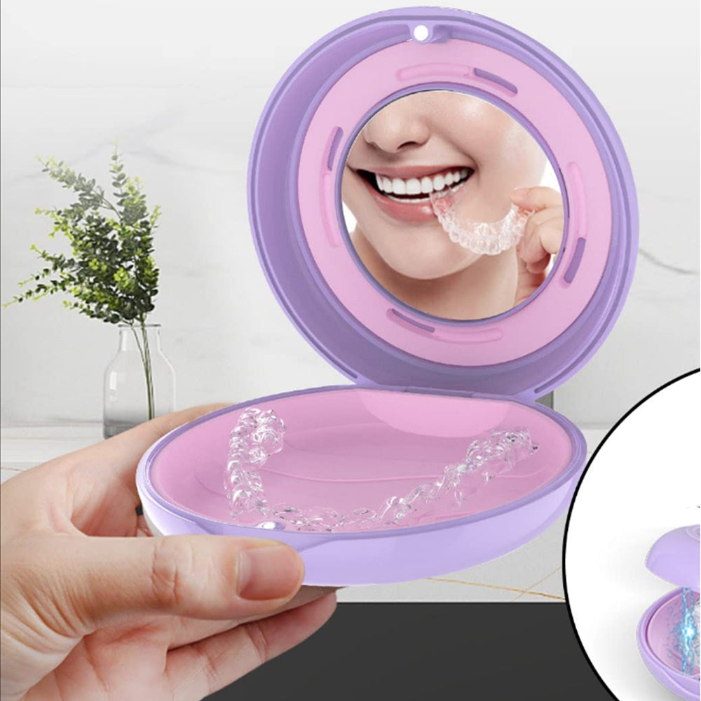 Mouth Guard Case with Mirror Retainer Case Night Guard Storage Box Purple