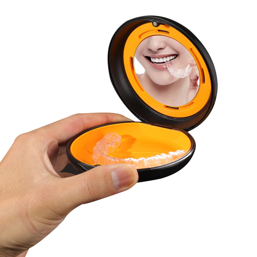 Mouth Guard Case with Mirror Retainer Case Night Guard Storage Box Black