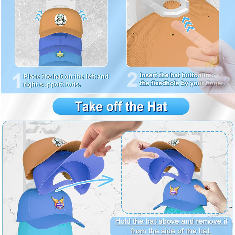 Prevent hat deformation with anti-squeeze layered design, this wall-mounted cap rack offering storage, display and quick-access function.