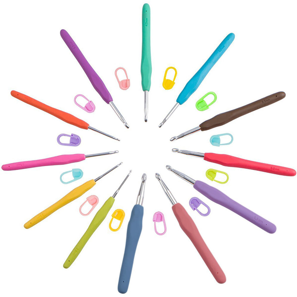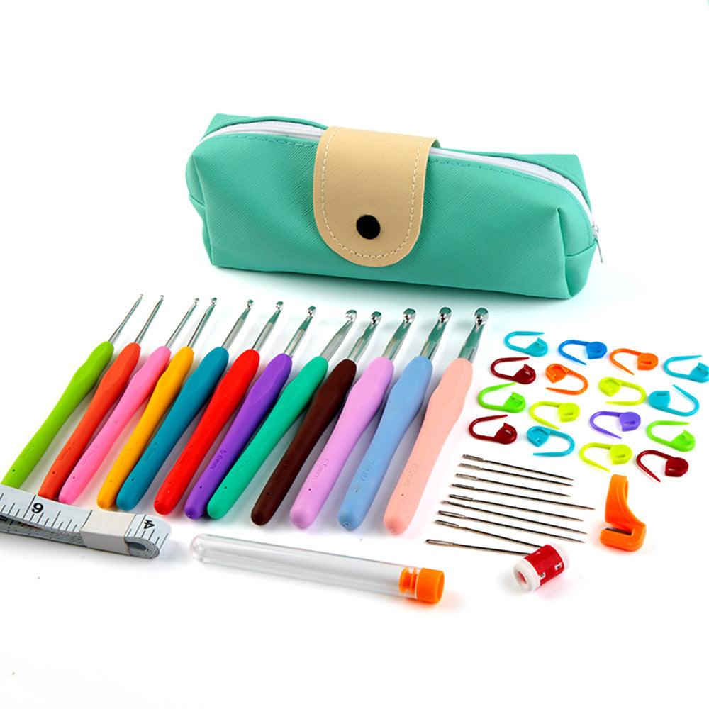 Multicolor Knitting Hook Set with Ergonomic Handles Yarn Craft Kit with Storage Bag