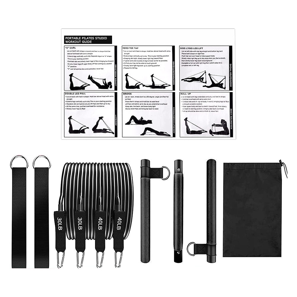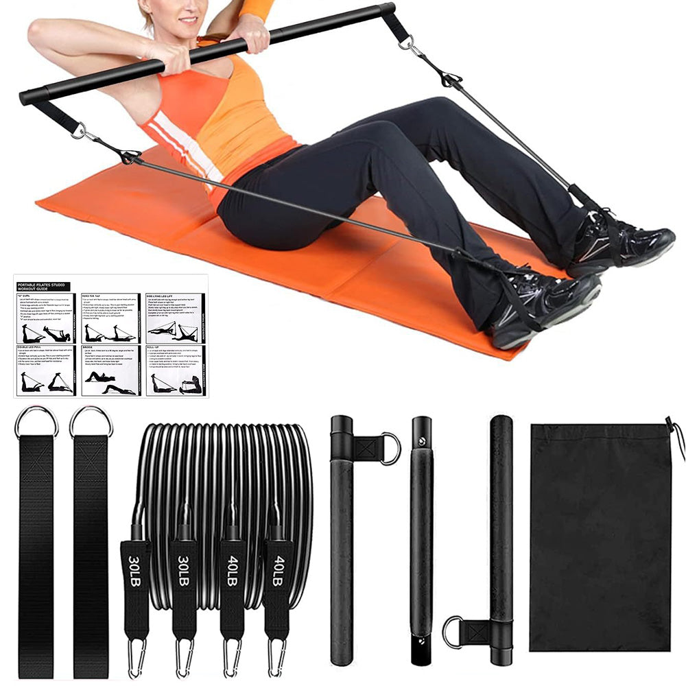 Multifunctional Pilates Bar Kit with Resistance Bands Portable Home Gym Core Strength Training Exercise Accessories Black