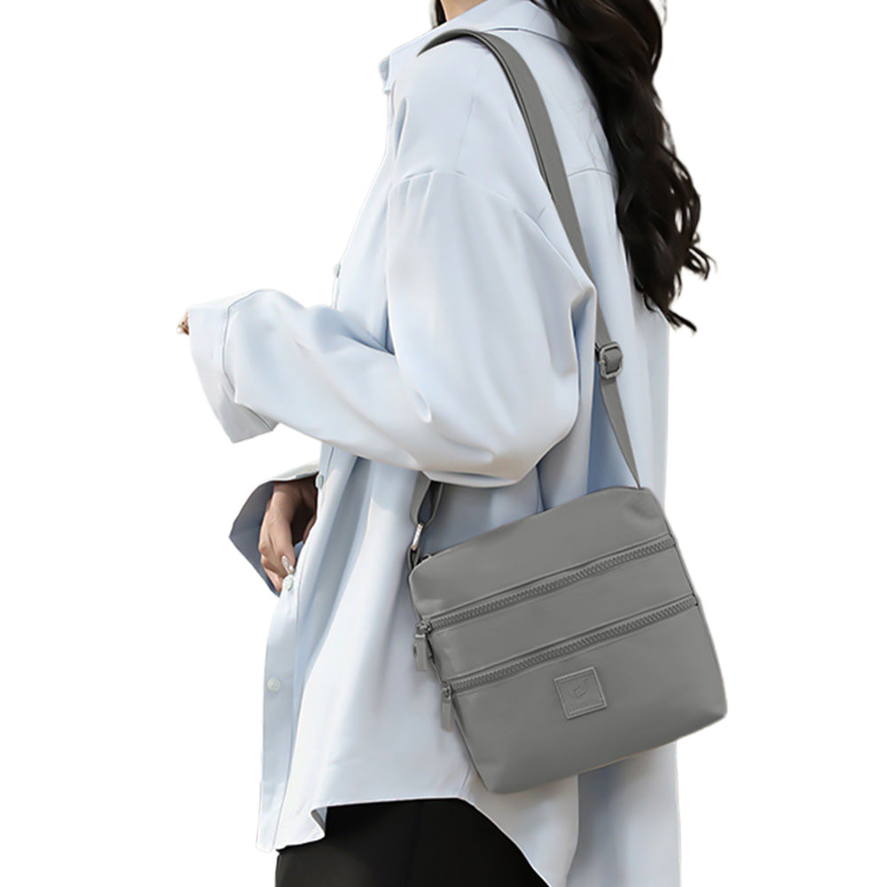 Multipockets Zipper Crossbody Purses Casual Nylon Shoulder Bag for Women Daily Handbag Gray