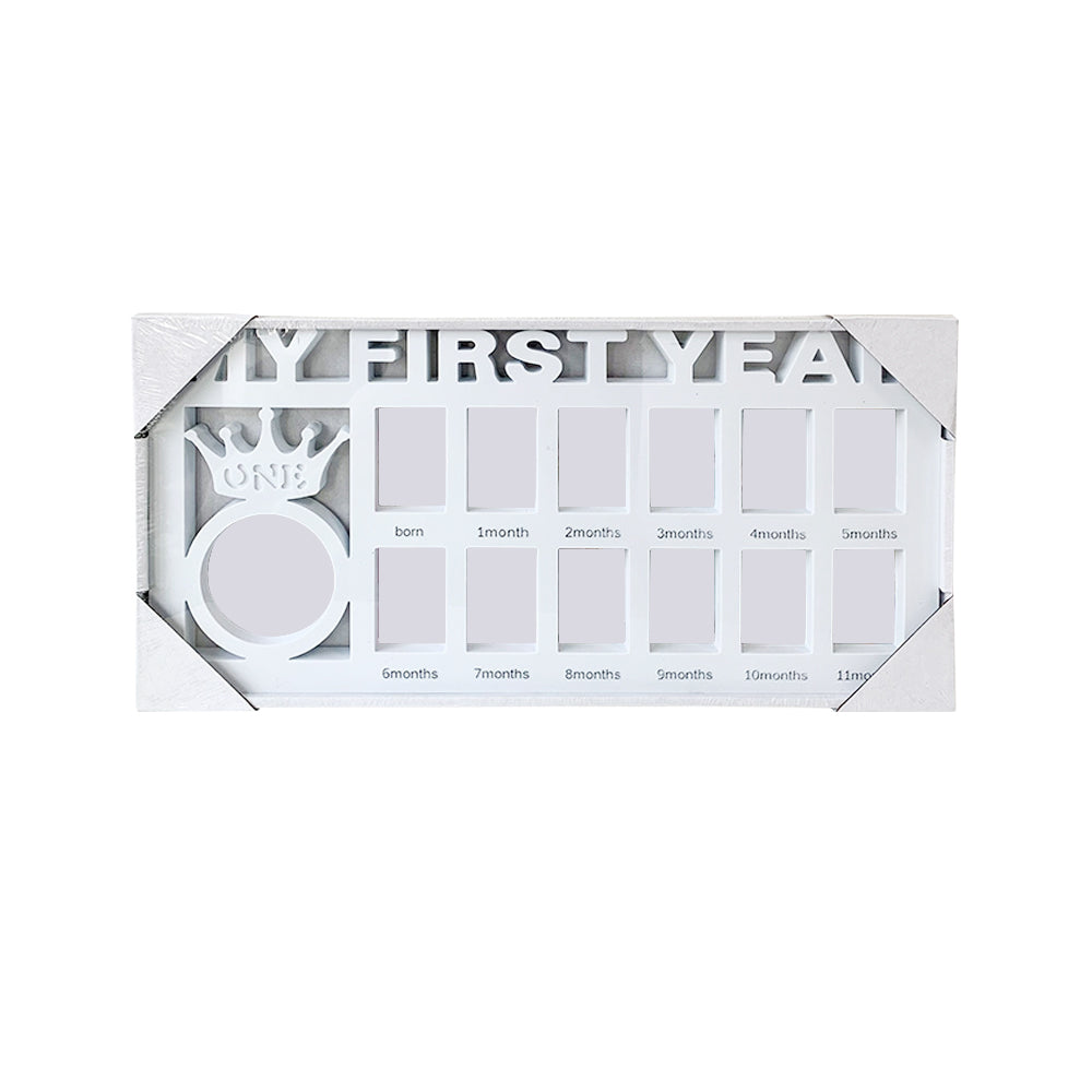 - "My First Year" frame displaying 13 photos of your newborn baby's first year of life, record your baby's growth.