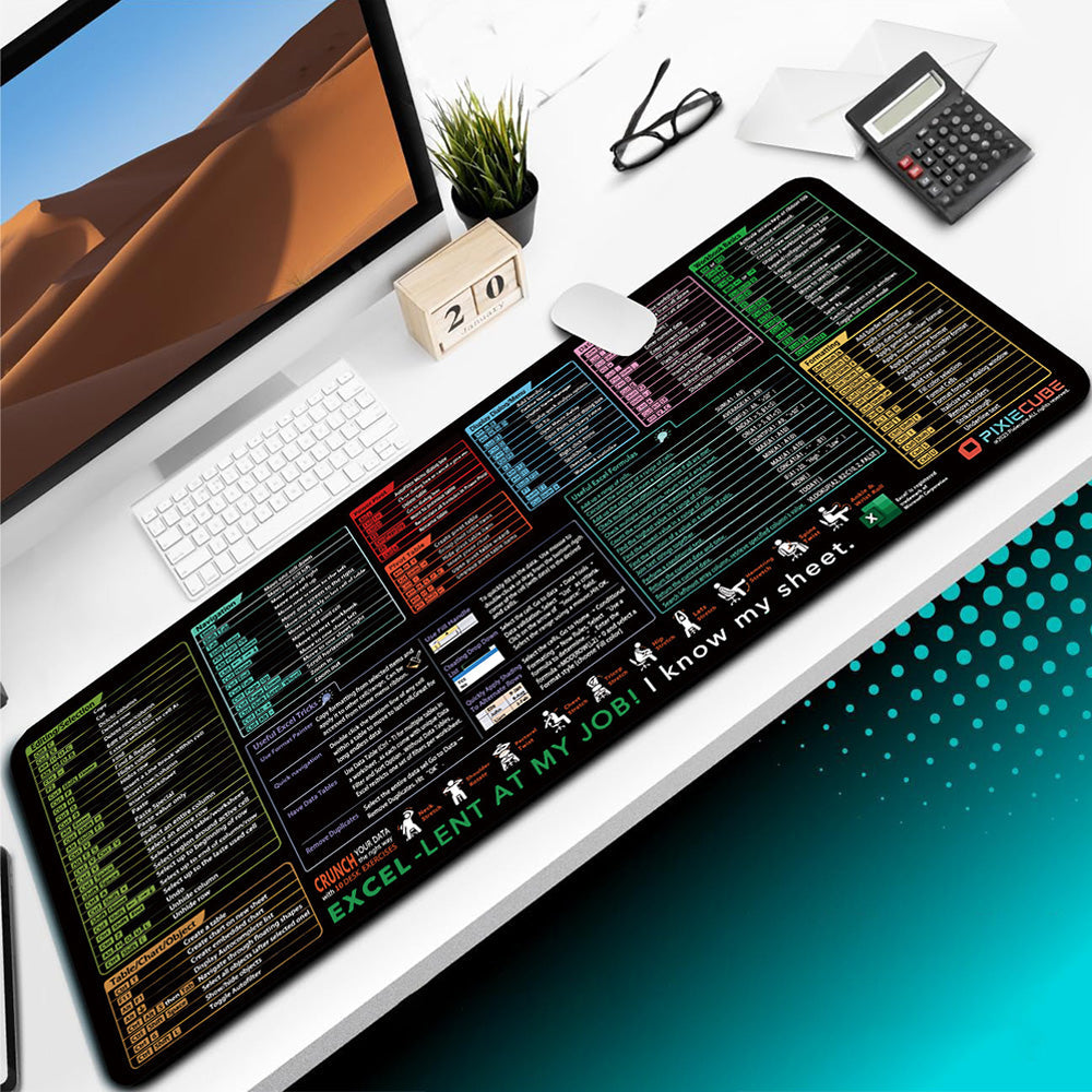 Non-Slip Excel Shortcut Keys Mouse Pad Quick Key Cheat Sheet Gaming Mousepad Office Spreadsheet Keyboard Mat