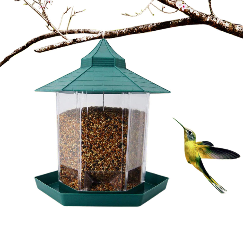 Outdoor Hanging Bird Feeder Gazebo Shape Seed Container Green