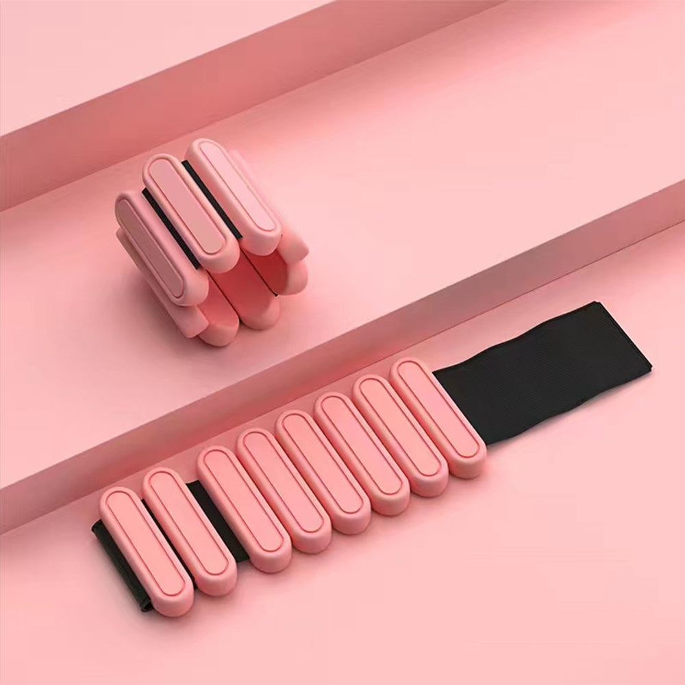 Pair of Adjustable Wrist Ankle Weights Wearable Bangles Silicone Bracelet for Yoga Aerobics Gym Pink