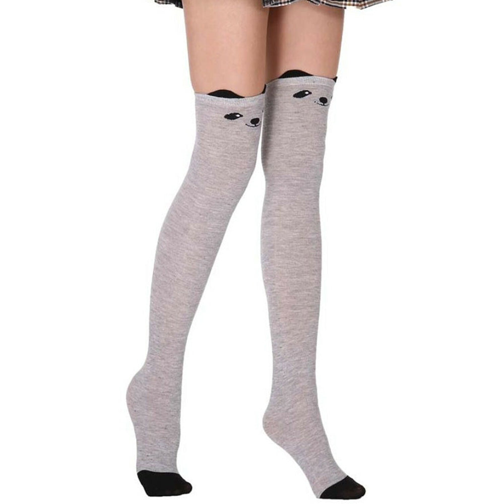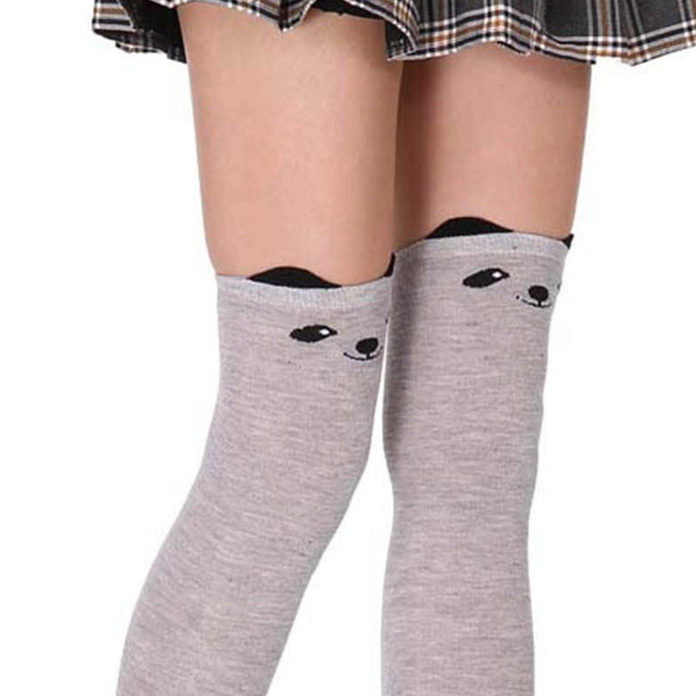 Pair of Cat Shape Warm Thigh High Over Knees Stockings Long Socks for Girls Gray