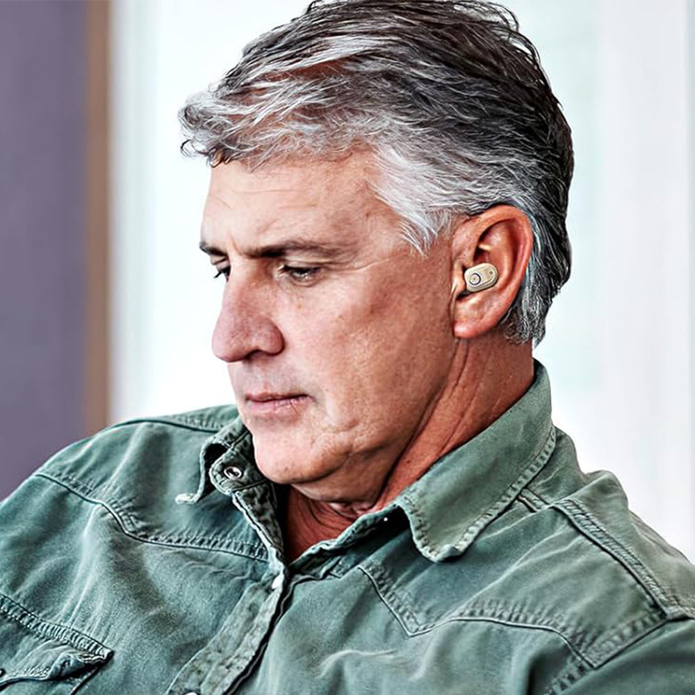 - In-ear hearing aid, compact and mini, almost invisible in the ear.