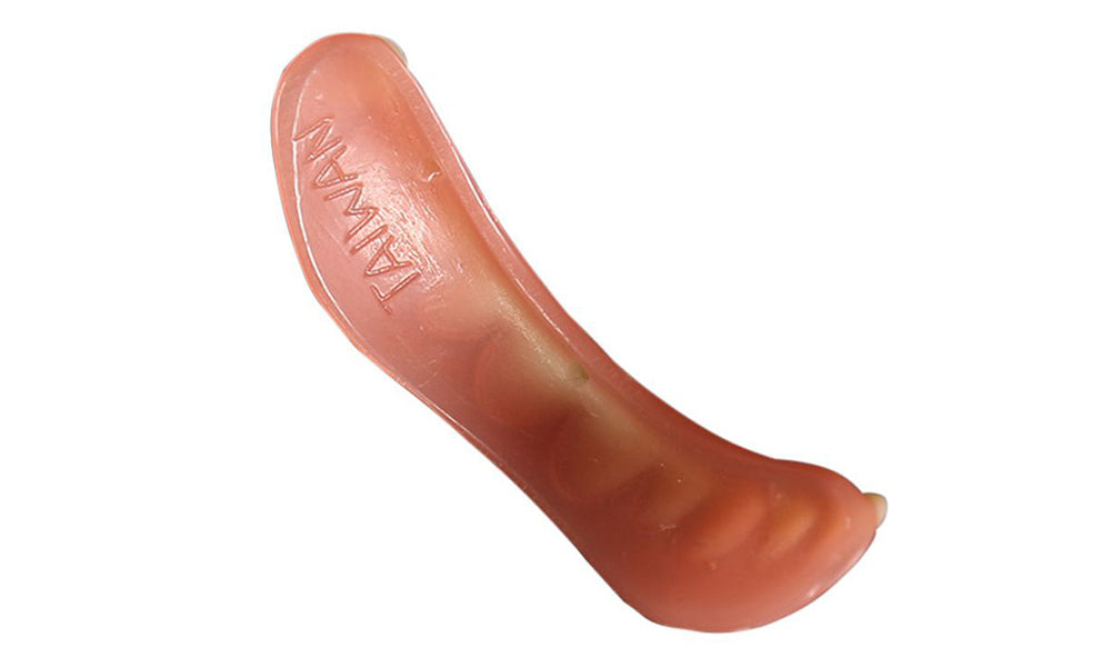 - Press?the?fitting?material?into?the?trough?and?back?of?the?fake?teeth